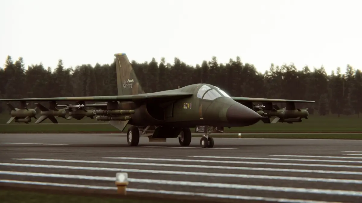 Detailed model of a General Dynamics F-111 Aardvark aircraft.