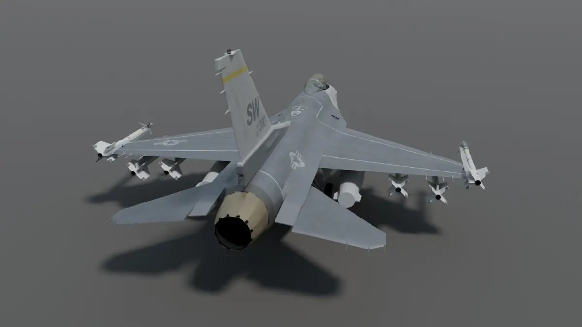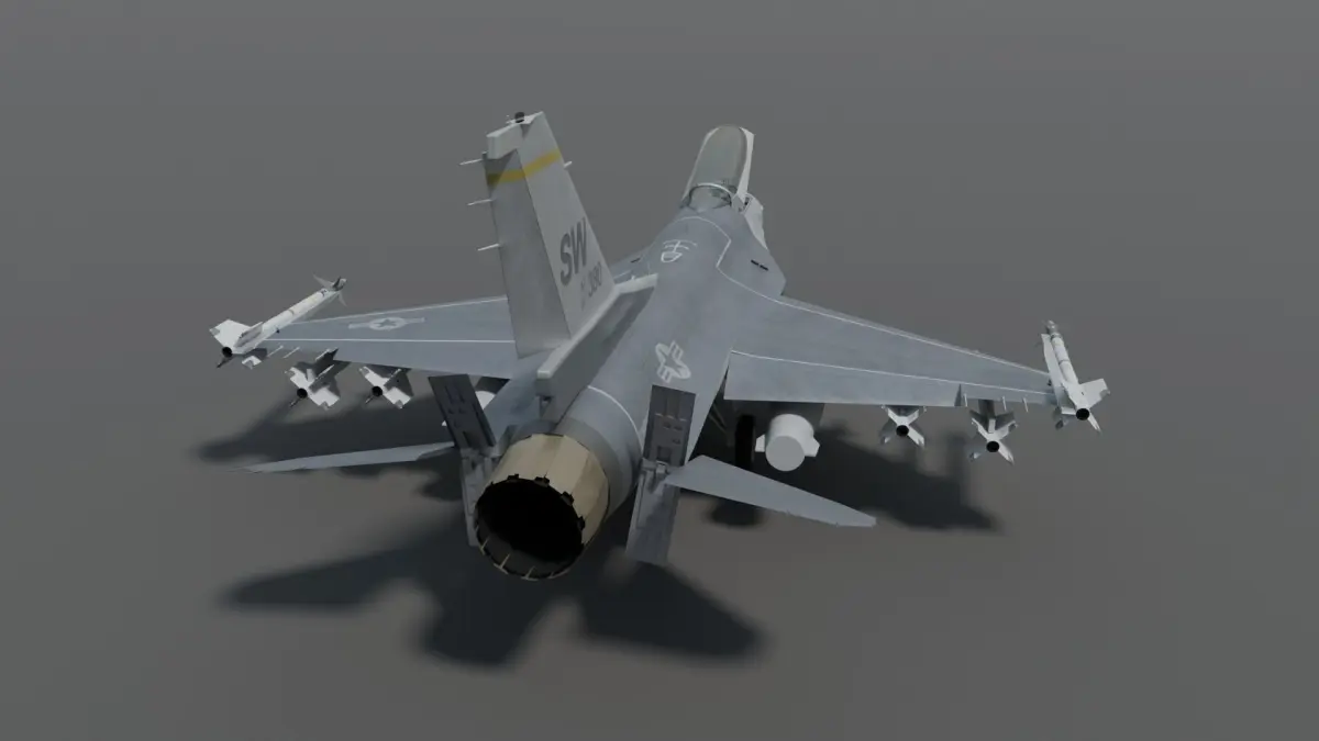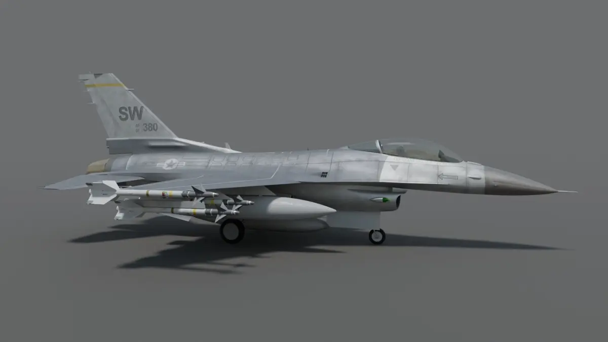 F-16 high-poly model with 4k pbr textures (normal, roughness, base color)All parts of aircraft as flaps, airbrake, etc. are separated from body and rigged;Aim-9M Sidewinder high-poly model with base-color texture and fuel tanks (with materials);Cockpit not detalised and gears are not rigged;Made in Blender 4.0.2