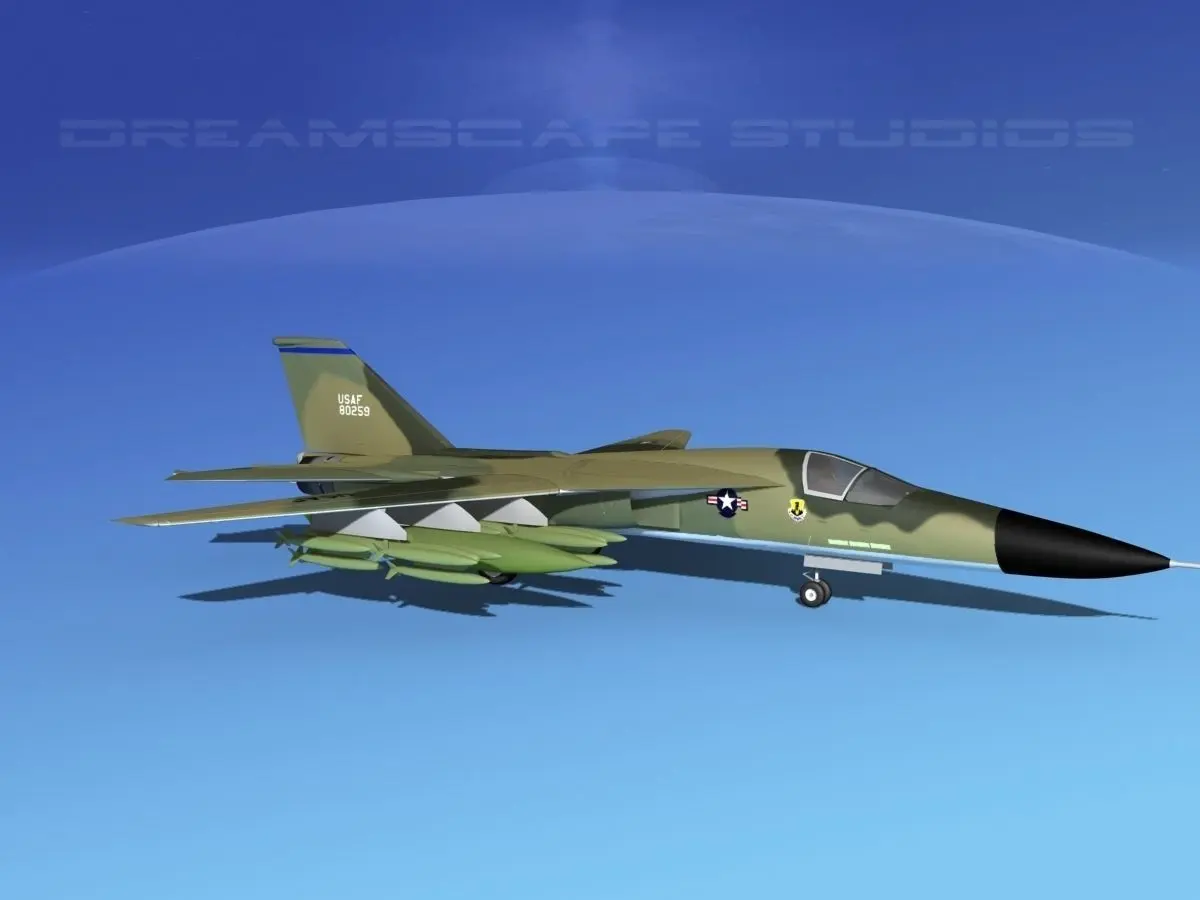 This bomber is built very near to scale, within a few inches of actual general dimensions. It is a complete update and rebuild from our original model series built in 2006. Updating was prompted by the request of an aviation museum in Australia, displaying an F-111G. They were thrilled with this model and others also supplied by Dreamscape. Much more detail, more accuracy and better flight controls are provided in this 90% rebuilt model. This model is fully textured and has many animateable features including stabilators, flaps, rudder, landing gear retraction and landing gear doors. Canopy can be opened and the cockpit has more detail than the original by far. This model is available in a wide variety of formats. The FB-111A/F-111G was developed from the F-111 to use in a tactical bomber and attack role for close air support.