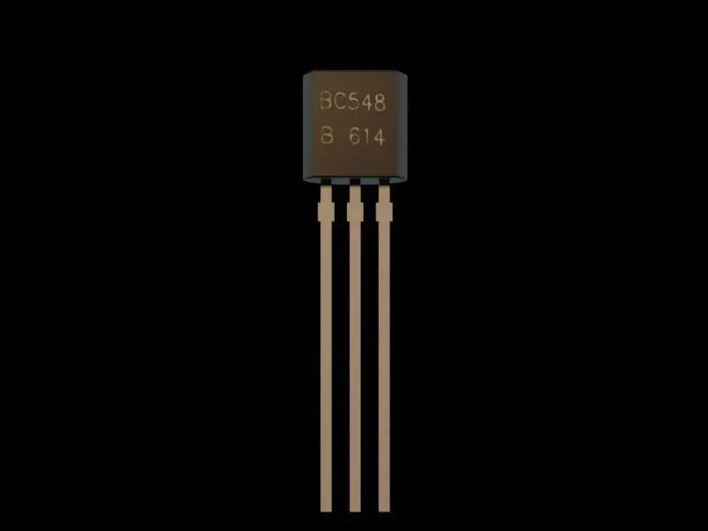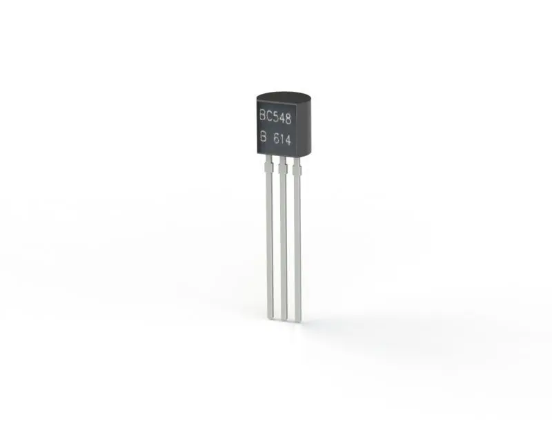 This is a transistor is modeled in the standard TO-92 Package. The texturing has the BC548 label which indicates that it is a general purpose NPN transistor.