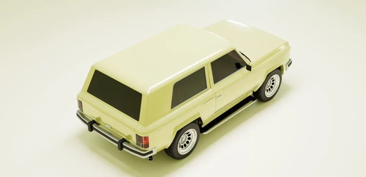 About Car: The idea of this car is further development of my generic SUV line. It is facelifted model of my previous SUV ment for 80s automotive car pool. Inspired by 80s SUV's.
