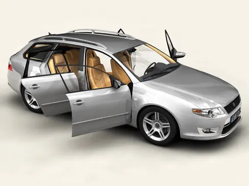Very high definition Generic Car compact class model with detailed interior fully textured. Generic means this car does not exist in reality. The logos used on the car are separated models and can be removed easily. The model includes tires with textured tread and tires with modeled tread.