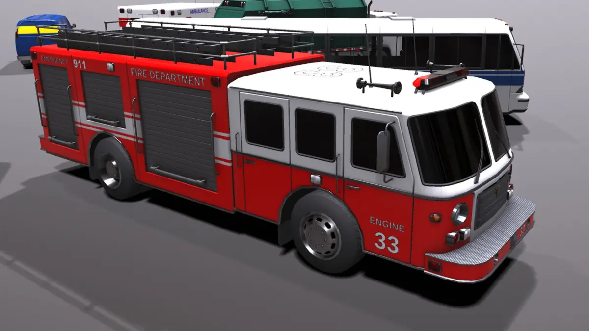 Ambulance - tris 9404 verts 5678,City bus - tris 9062 verts 5236,Fire truck - tris 12110 verts 7619,Garbage truck - tris 12747 verts 7739,Police sedan - tris 8454 verts 5307,Postal van - tris 6031 verts 3284,School bus - tris 11472 verts 7116,Service truck - tris 8216 verts 4718,Taxi - tris 7306 verts 4546,Tow truck - tris 7955 verts 4757.