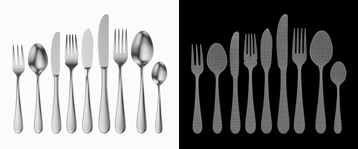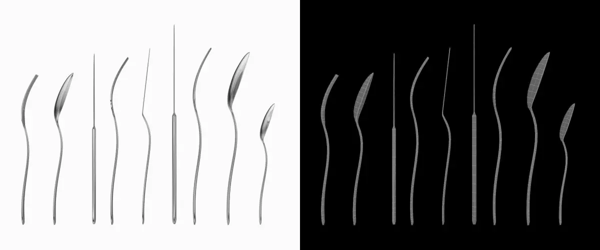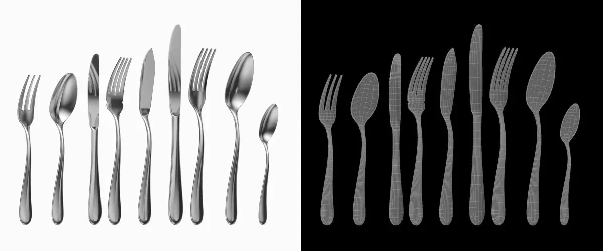 Save 60% of the initial price with this collection of cutlery 3D models!**Photo-realistic **3D model of generic cutlery: table knife, table fork, table spoon, dessert knife, dessert fork, dessert spoon, fish knife, fish fork, teaspoon. The model is UVW unwrapped and smoothable, ready for 3D print.