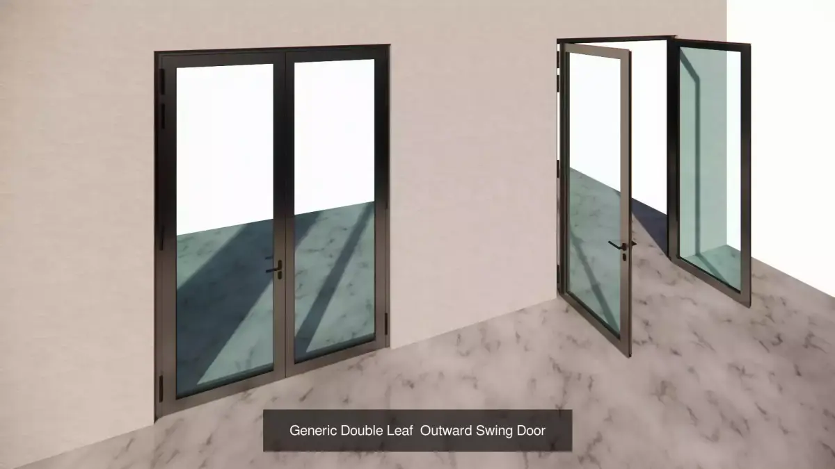 • Dimensions: Single Leaf with 1000mmmm (Width) x 3000mm (Height) for both Outward and Inward Swing Doors as well as Double Leaf with 2000mmmm (Width) x 3000mm (Height) for both Outward and Inward Swing Doors .