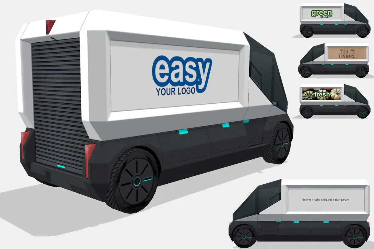 The carthe model is a free interpretation of what a delivery van could be, with a futuristic appearance but with very simple lines.