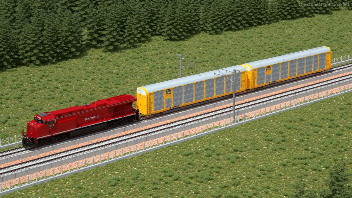 Generic Locomotive with Auto Rack Train Car is a 3d model of a standard locomotive paired with an autorack train car, designed for the efficient transportation of automobiles.