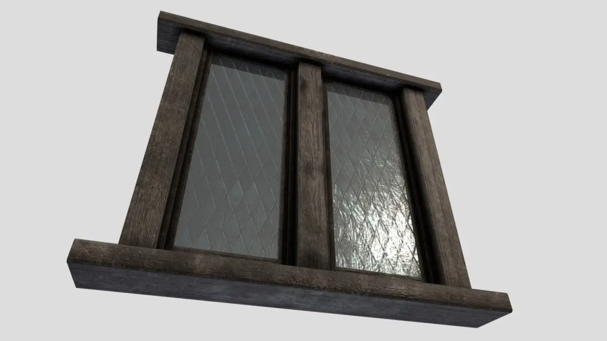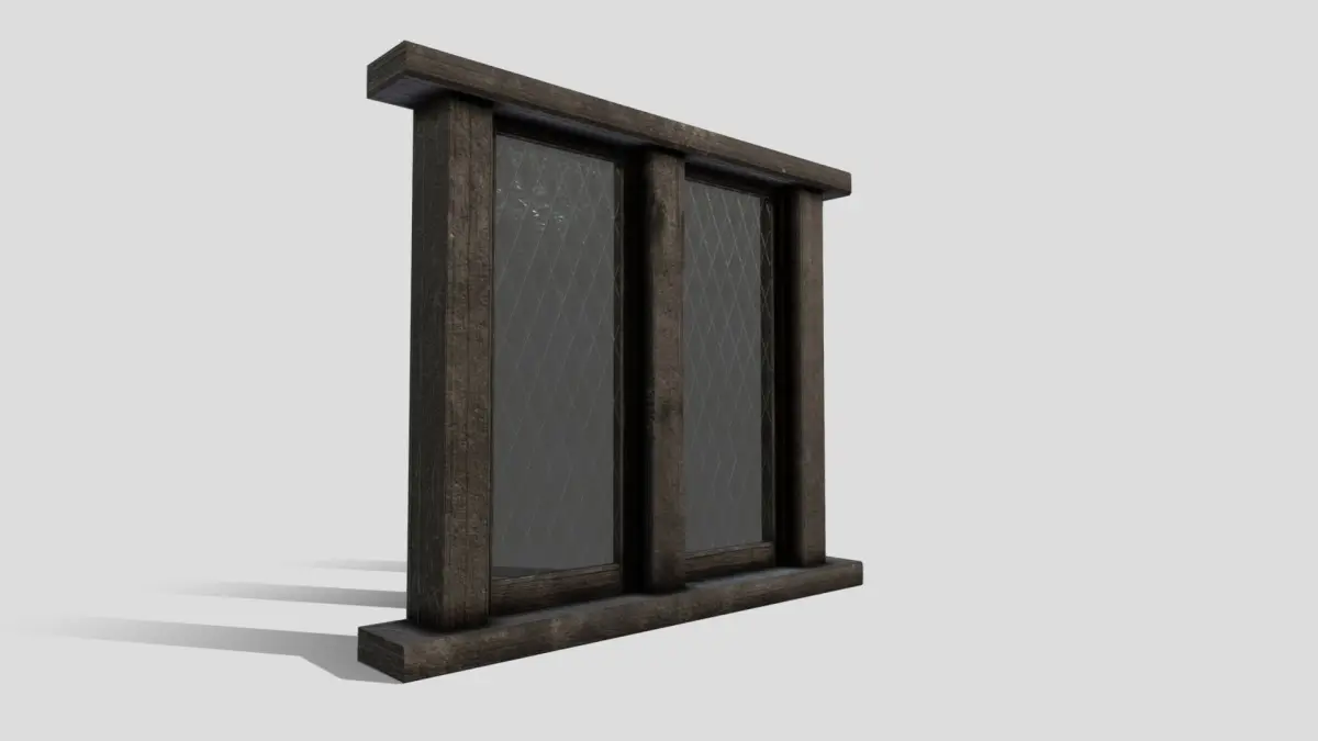 A generic wooden double-sided medieval window. Based on Tudor design. Model is low-poly, hand-painted, PBR.