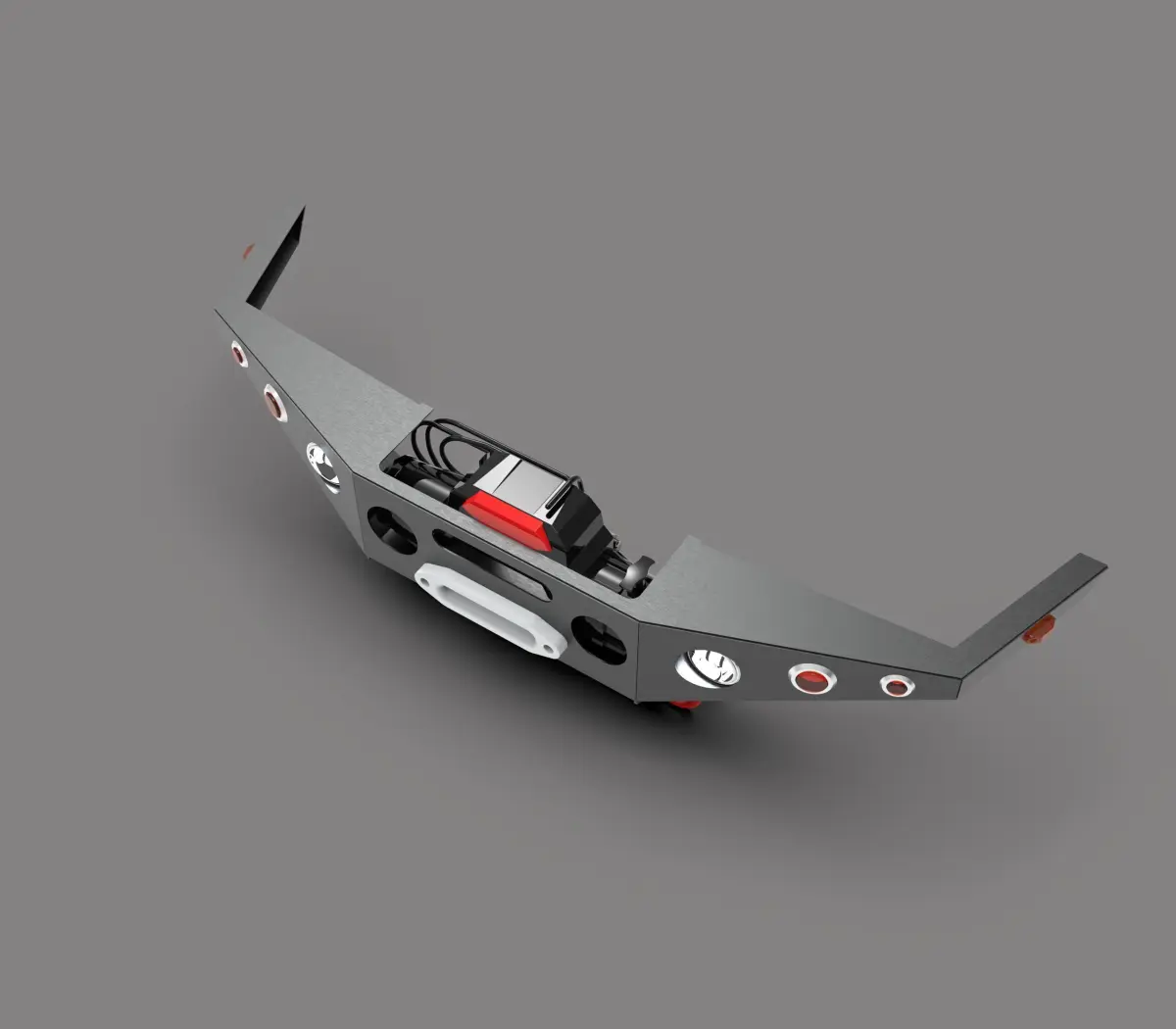 Universal metal front bumper 3D model, designed for off-road vehicles, custom builds, or utility trucks. Features a rugged design with reinforced edges and mounting brackets. Ideal for vehicle customization projects, off-road scenes, and mechanical visualizations. Compatible with most pickup truck models in 3D environments.