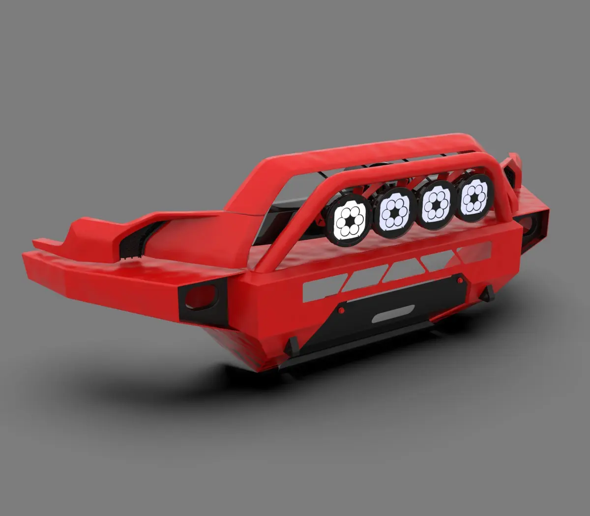 High-quality 3D model of a generic metal front bumper for Toyota 4Runner, designed for off-road durability and protection. This model accurately represents a reinforced steel structure, skid plates, and mounting points for accessories such as winches and LED bars. Optimized for high-quality renders, animations, VR/AR applications, and automotive visualizations, this model is ideal for projects requiring a realistic and detailed off-road bumper.