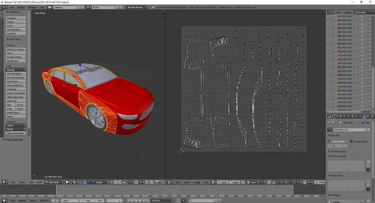 -The car is linked into several objects to make it more suitable for animations, rigging and modifying.