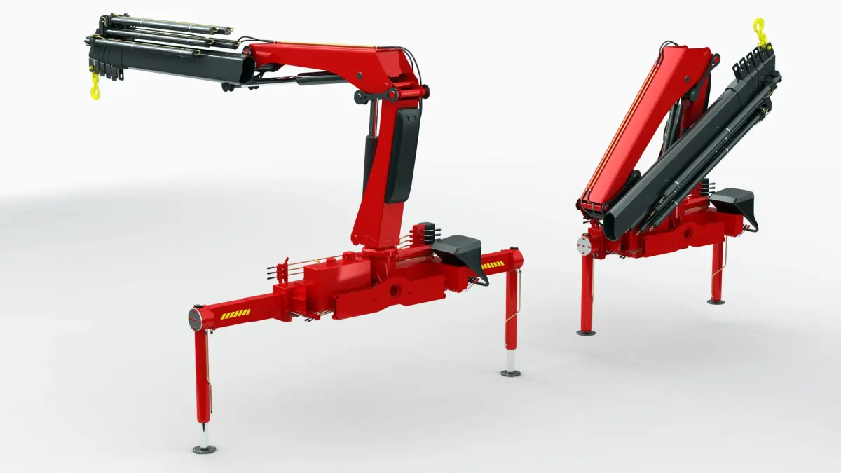 - The model has two cranes: one in the stowed position and the other ready for work.