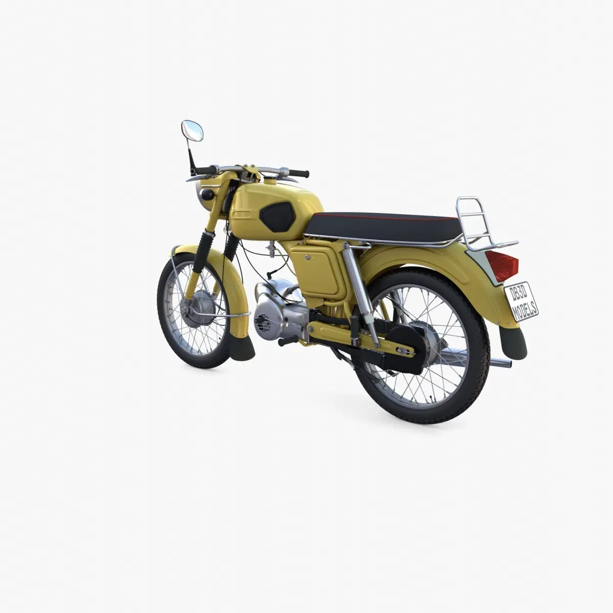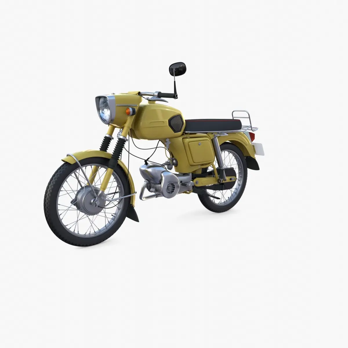Highly detailed Moped 3d model rendered with Cycles in Blender, as per seen on attached images. The model is very intricately built, it has all cables, brakes, suspension elements modeled. The frame is also entirely modeled even though a part of it can be seen because the rest is covered by all other elements.It comes with 2 versions per format, one with solid modeled tires and the other one lower poly with tire details resulted from a bump map. The original poly count is for the lower poly version.The 3d model is scaled to original size in Blender.