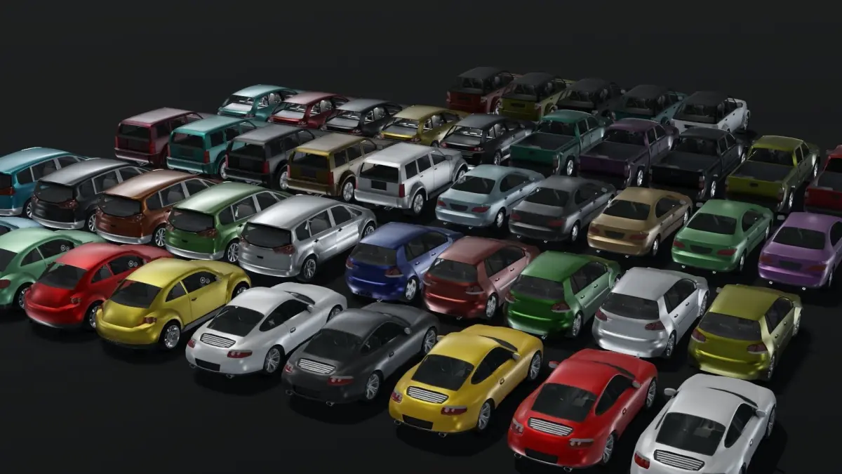 - 9 different car types each of them with 5 different color textures.