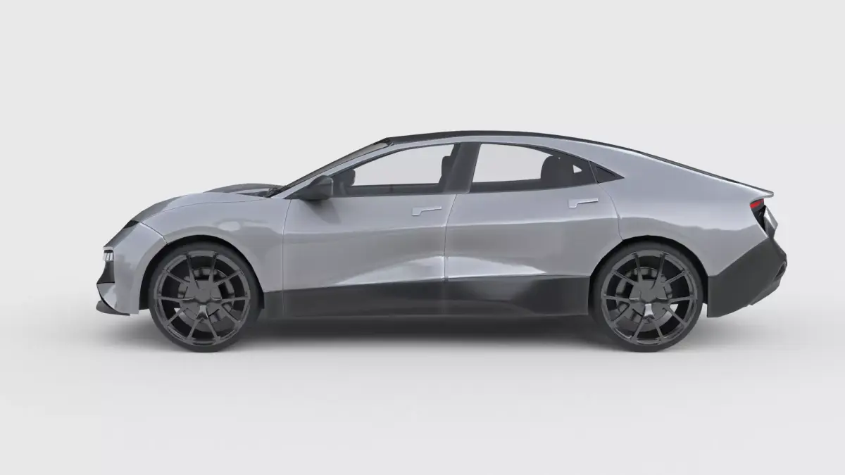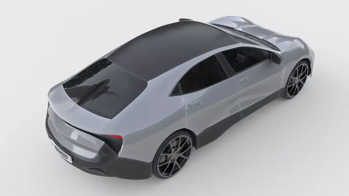 - Modern 2025–2030 EV sedan styling with minimal compact design