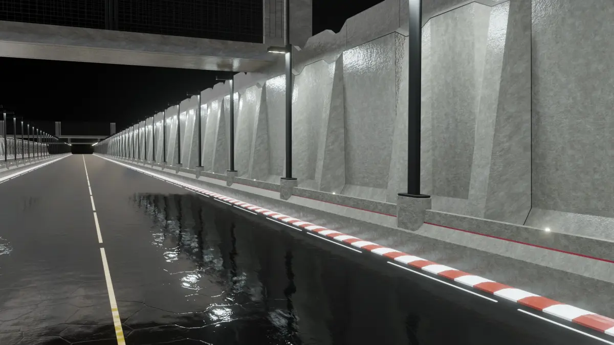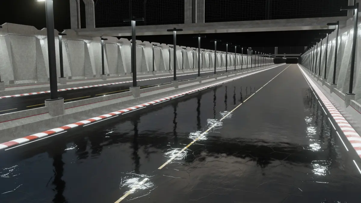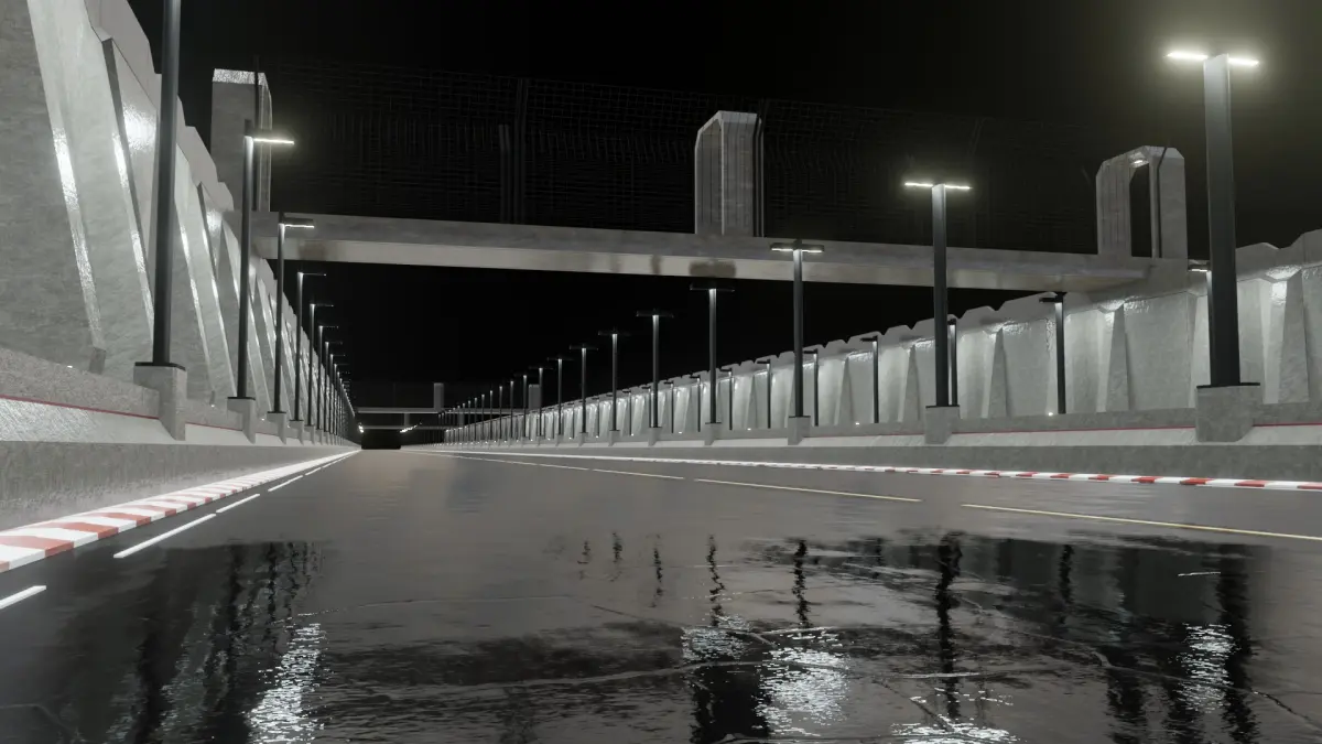 3d design of a generic race track, the design was made in blender, it is rendered in cycles and evee, the design is ready to perform a repetition of it to obtain the desired length.