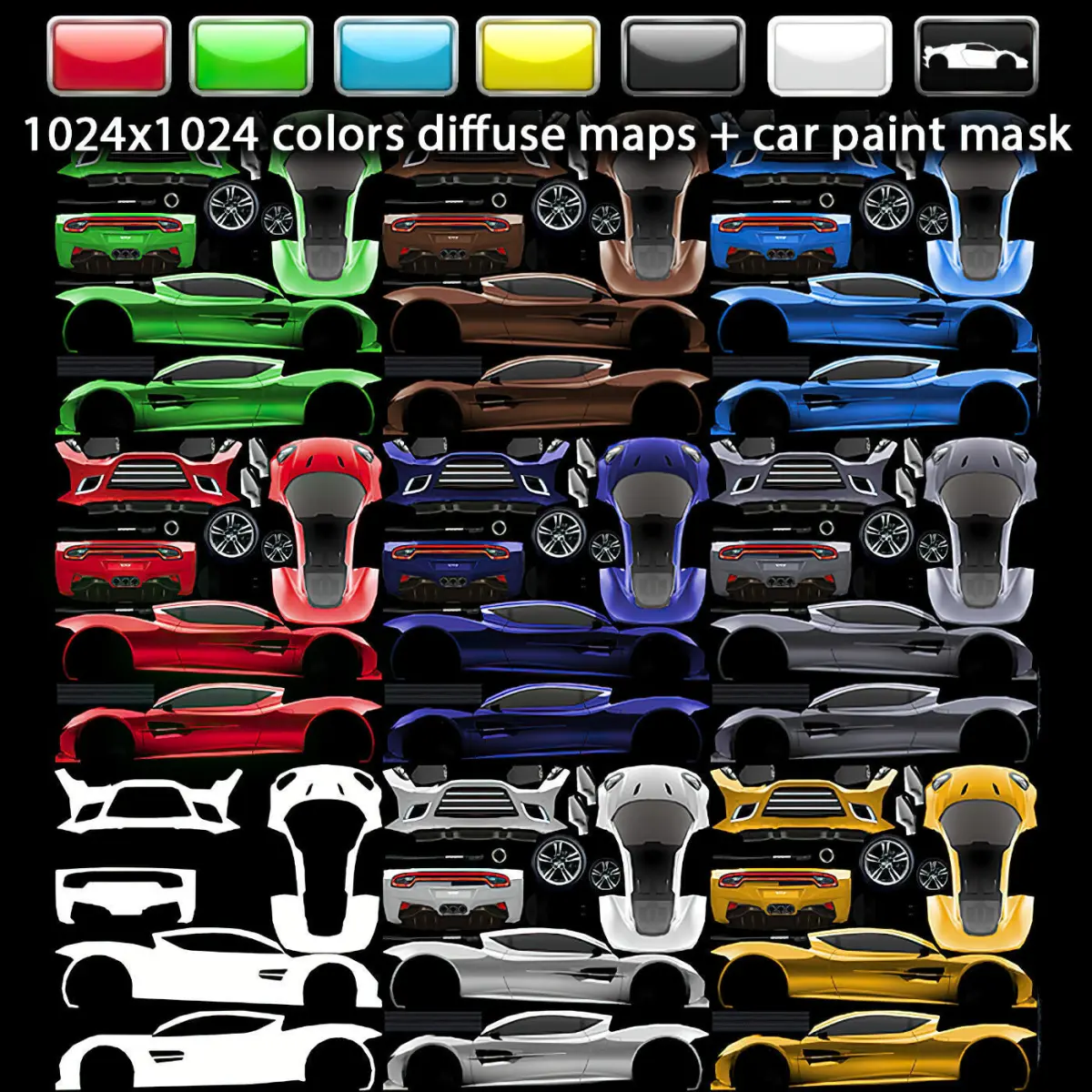 6 different colors 1024x1024 diffuse maps