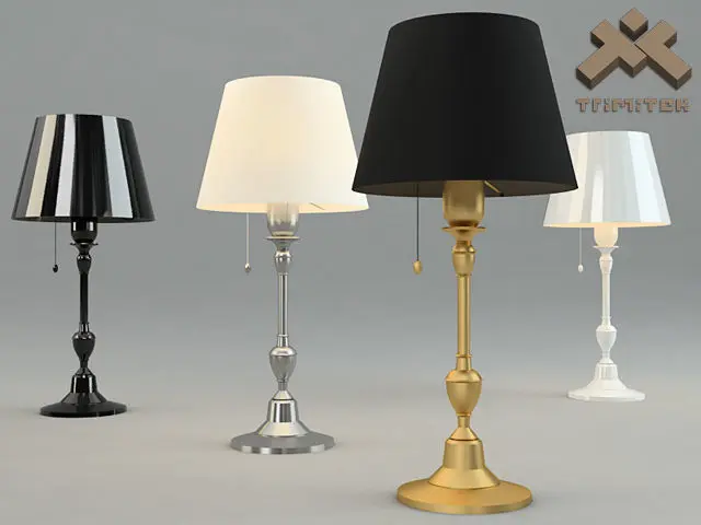 Simple and elegant table lamp 3d model available in black, white, silver and gold versions.
