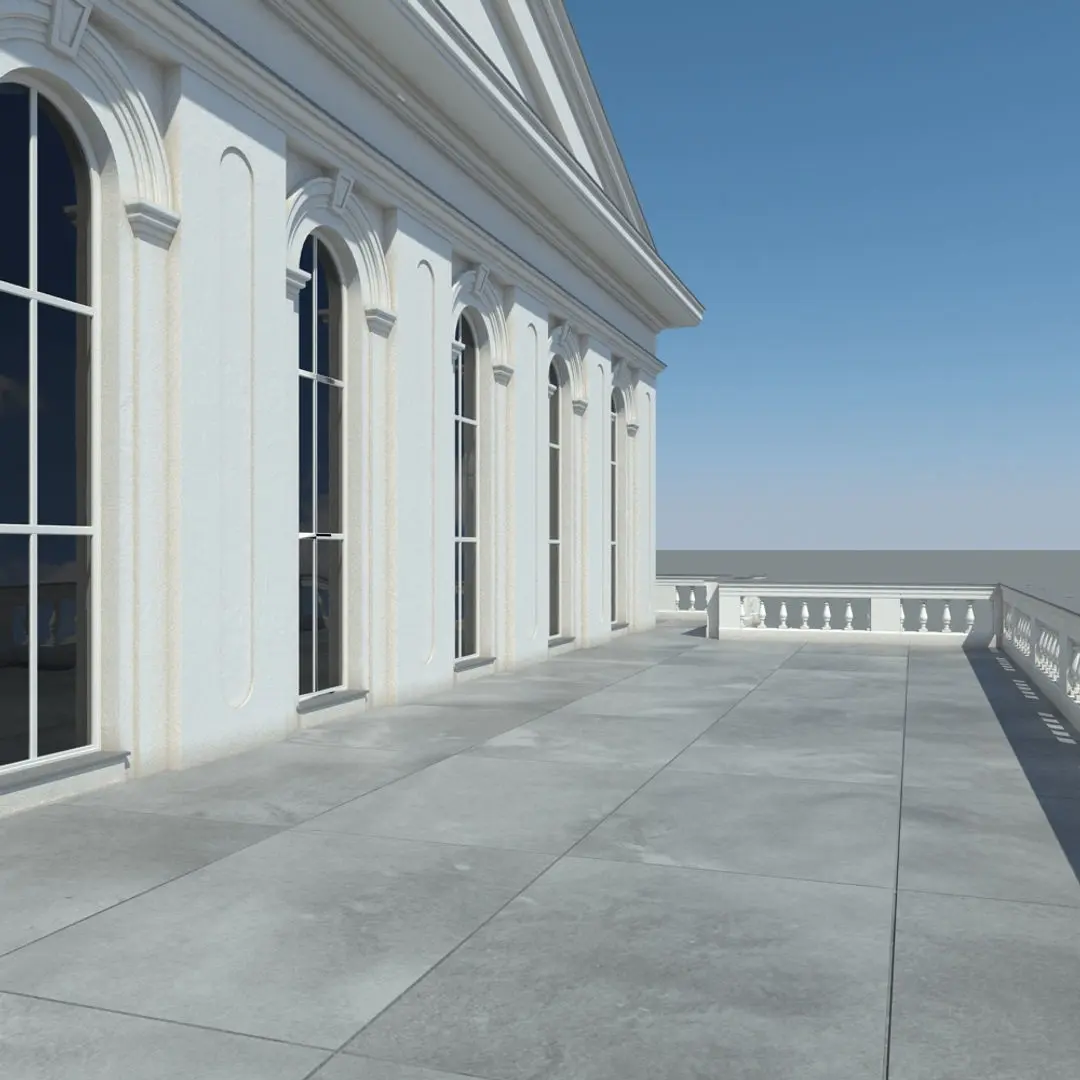 - the shader uses a bumpmap and vraydirt for its used look. some parts like the balcony uses the same material but different dirt settings