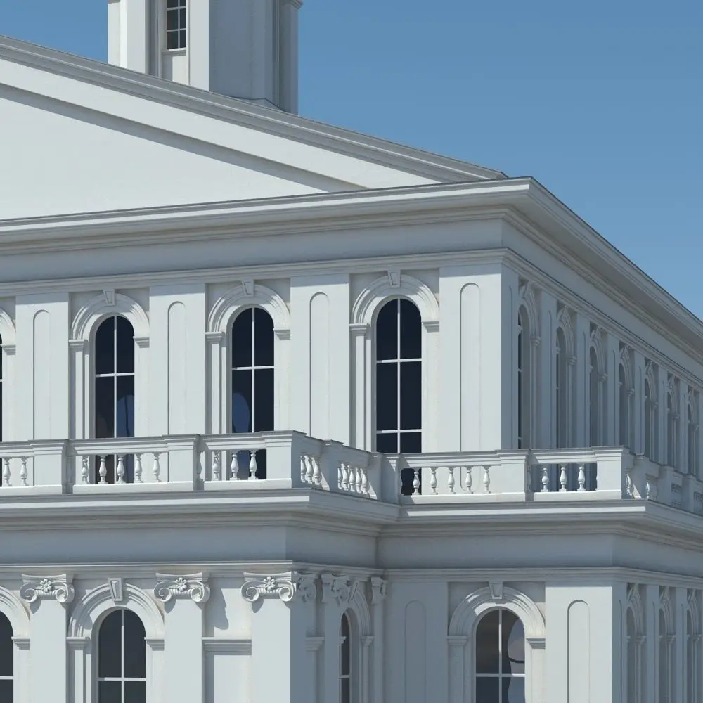 A DETAILED 3D MODEL OF A GENERIC TOWN HALL BUILDING;