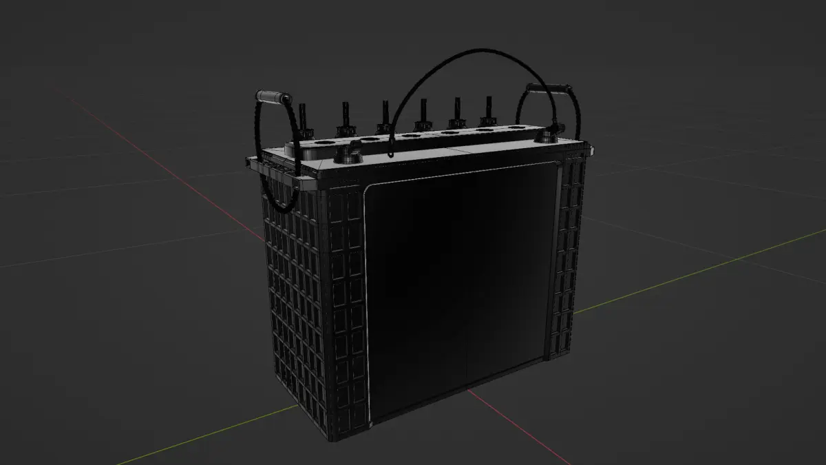 Includes: rigged cable connected to the object Terminal pos *The cable is made from a bezier curve with three control points -> The center control point is hooked to the empty Center. Moving the empty will move the center of the cable -> The end control points are hooked to hidden empties which are parented to the cable locks Cable end and Cable end.001 --> The origins of the Objects Cable end and Cable end.001 are displaced such that giving them the same position as the objects Terminal+ or Terminal- would place them at the right distance from the terminals. This can be done using the 3D cursor -> The objects Bolt and nut have their origins displaced in the same way as Cable end and Cable end.001