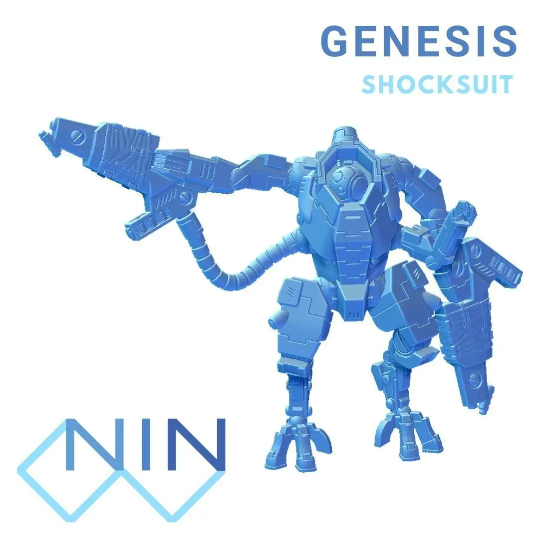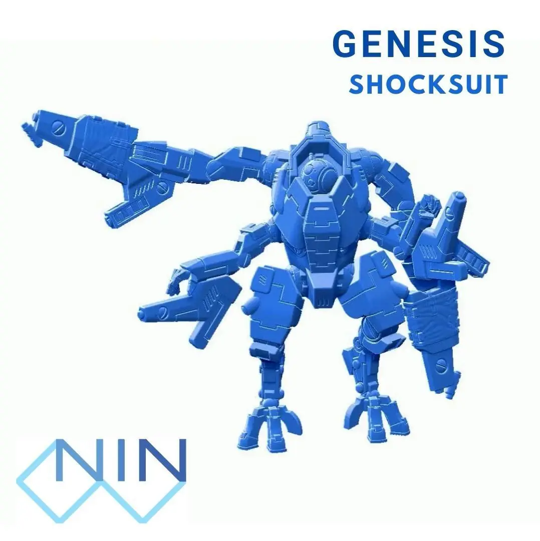 Genesis Shocksuit is one of the last prototypes made by Onos Industries. It is a four armed battlesuit with a unique and exotic design. The bulky ventral armour protects the pilot working as a shelter while the four arm configuration, aided by AI and rotative high precision sensors, gives the possibility to acquire and hit multiple target on the battlefield.
