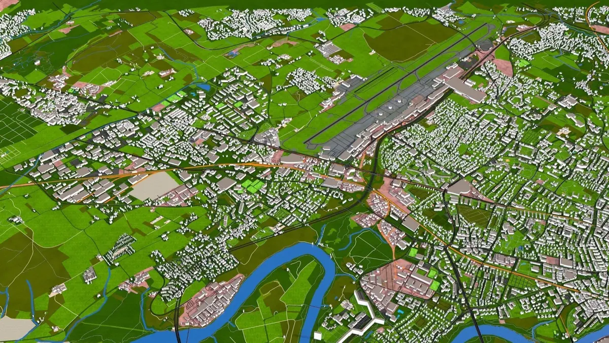 • Building Hipped roof – More detailed roof structures, obtained from different source. Building height may vary from other two sections. It is placed exactly on right place however due to different source and data the contour buildings may misaligned. Useful for aerial shot, architecture etc.