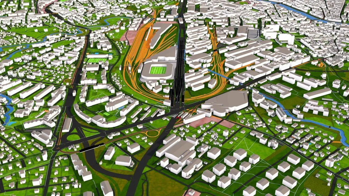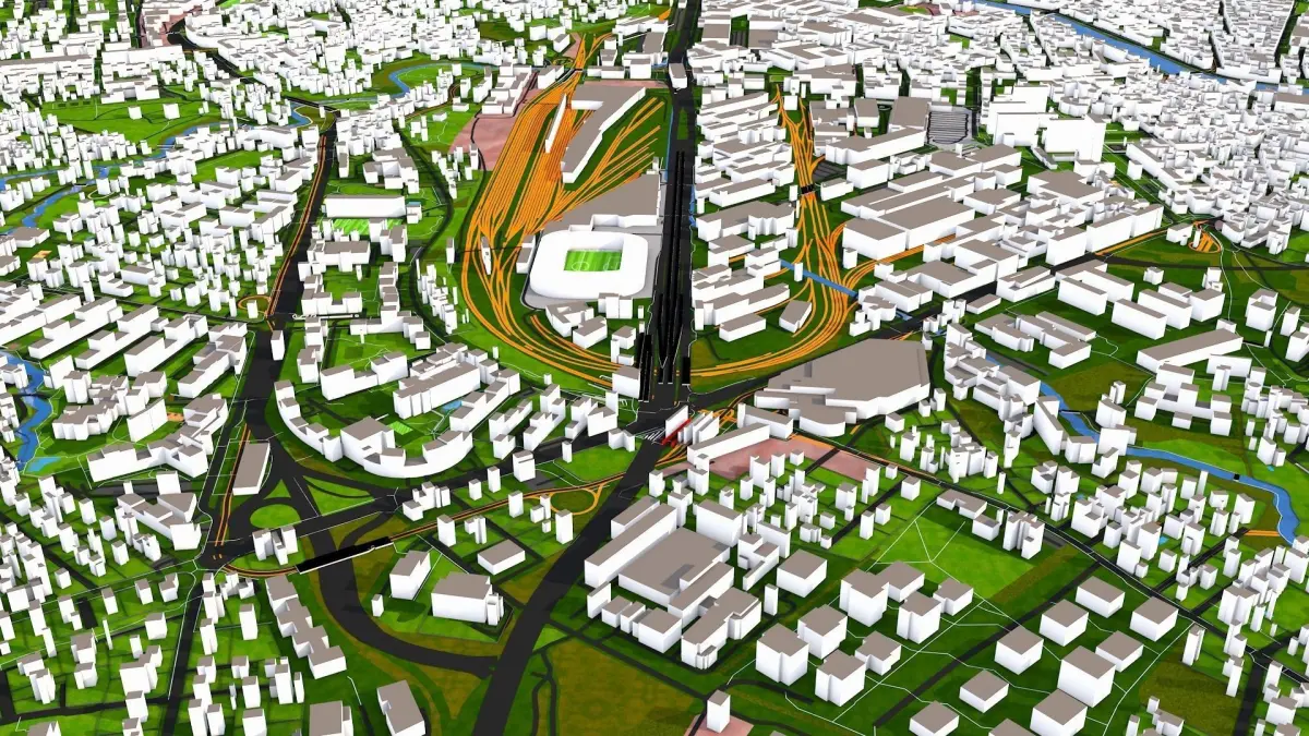 If you are using any polygon format (other than c4d file) you may want to use original curve data for roads, rail, river etc. Just merge any of the supported 2d format (alembic, dxf or c4d) on top of the polygon file. You can add traffic details, power lines, aerial ways, trees using all those extra details.