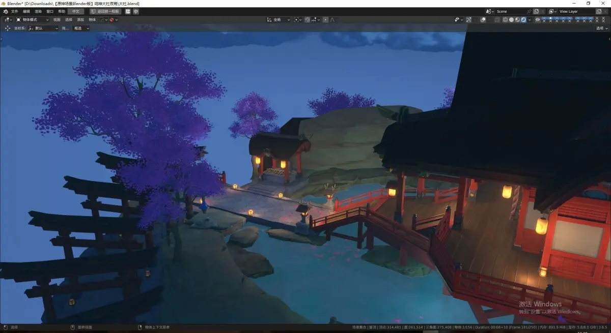 [Genshin Impact 场景/Blender 版]鸣神大社之夜 Genshin Impact 游戏中的夜景 重置你自己的天空节点 已获授权;版权所有:《原神》 - 上海米哈游网络科技股份有限公司 如果你想要白天的效果,只需删除外面的天空框,添加一个白天动漫风格的天空框。PS: The sky box uses textures to save resources. If it freezes, you can turn off the lights at the back qwq Let’s have fun playing in Genshin Impact together Narukami Taisha Shrine is the largest shrine on Narukami Island. The great shrine maiden in charge of the shrine is said to have a close relationship with General Raiden. Although there is no way to ask the great shrine maiden to take action in person, even the ordinary shrine maiden in Narukami Taisha Shrine has absolute authority on the matter of exorcism. The Eight Great Masters are knowledgeable about the past and present, and have personally warded off countless disasters and evil spirits.
