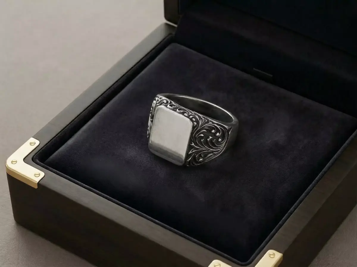 This digital asset is a must-have for jewelry designers and 3D printing enthusiasts. The flat face is perfectly sized for custom engraving—whether it's a family crest, initials, or a unique logo. Engineered for professional production, the deep recesses are designed to hold a dark patina or oxidation, making the high-relief scrollwork stand out beautifully in silver or gold.