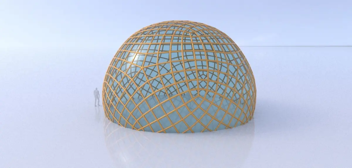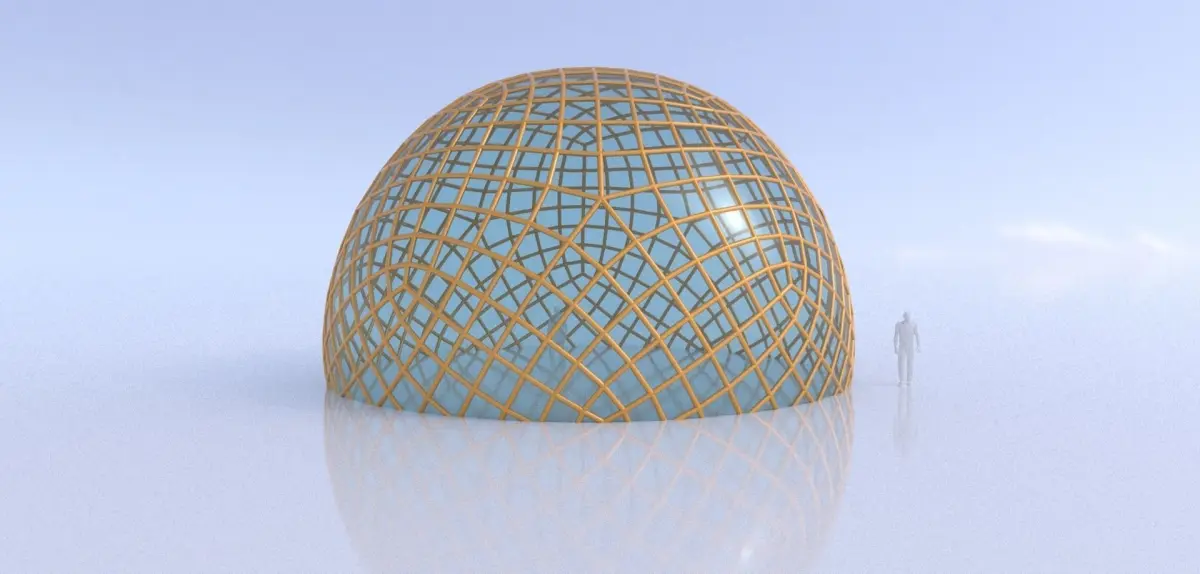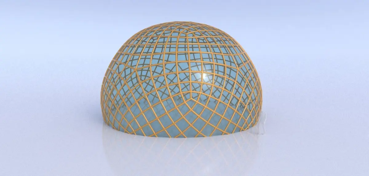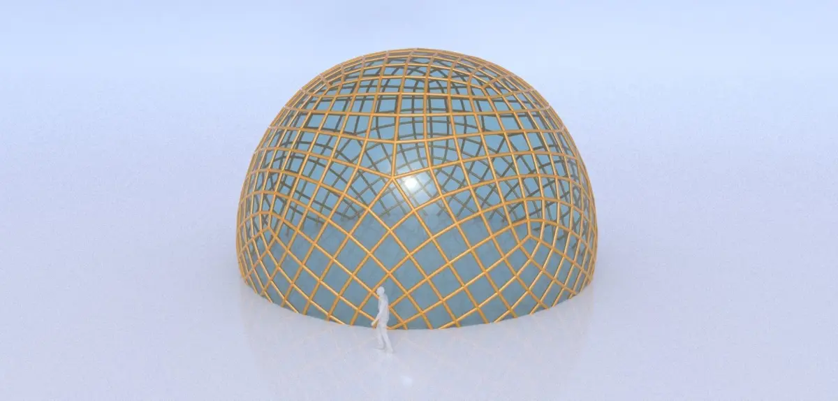 This is a Geodesic dome like enclosed structure with glass panelsmade using Rhino 3D and Grasshopper plugin. Rhinoceros is primarily a free form surface modeler and Grasshopper is a visual programming language and environment that combined create unique designs.