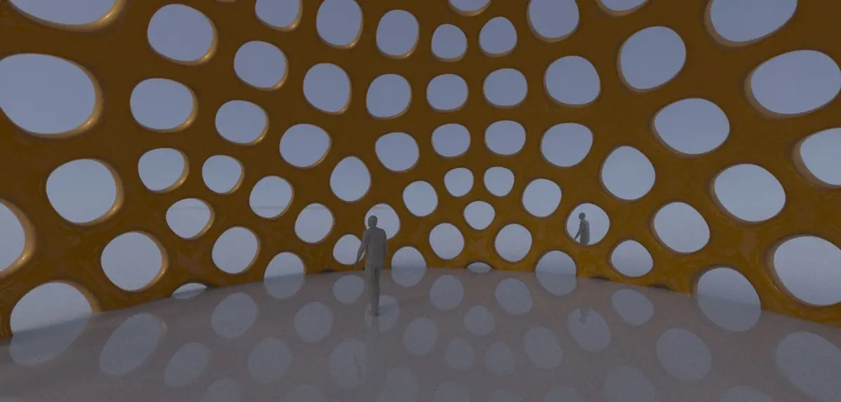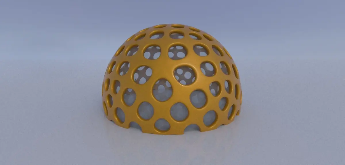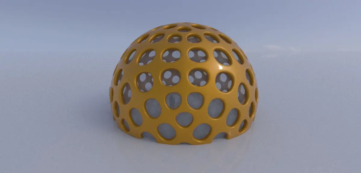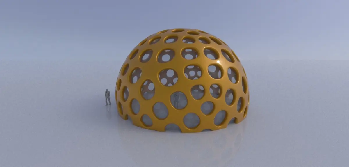 This is a large Geodesic Dome Like structure with round perforations made using Rhino 3D and Grasshopper plugin. Rhinoceros is primarily a free form surface modeler and Grasshopper is a visual programming language and environment that combined create unique designs.