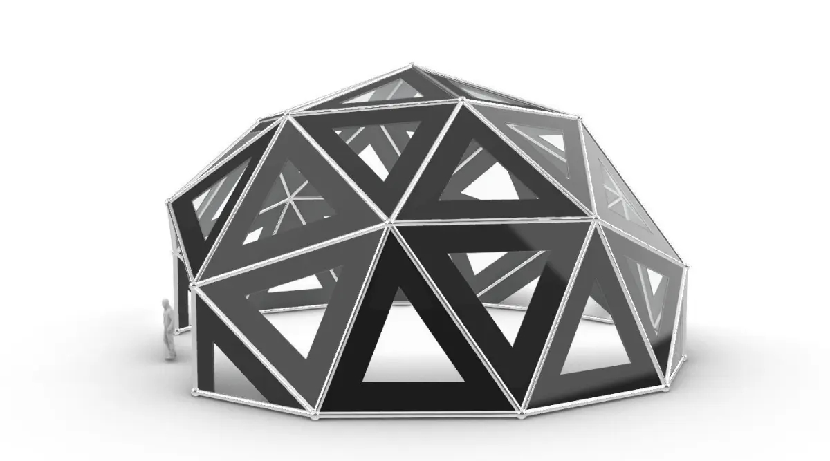 This is a Geodome created in Rhino 6 along with Grasshopper. This is a custom design that can be updated and changed.