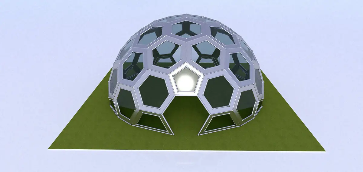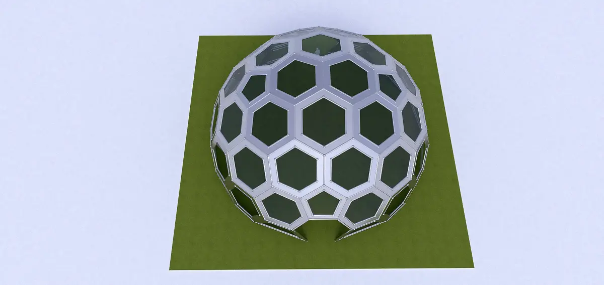 Geodesic Dome with frame and glass panels made using Rhino 3D and Grasshopper plugin. Rhinoceros is primarily a free form surface modeler and Grasshopper is a visual programming language and environment that combined create unique designs.