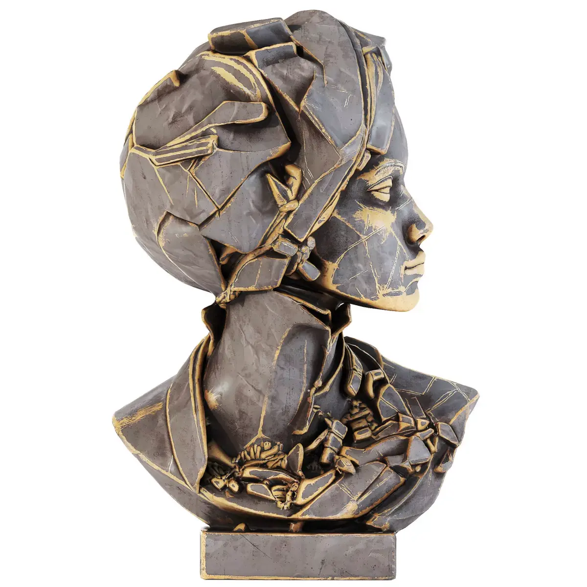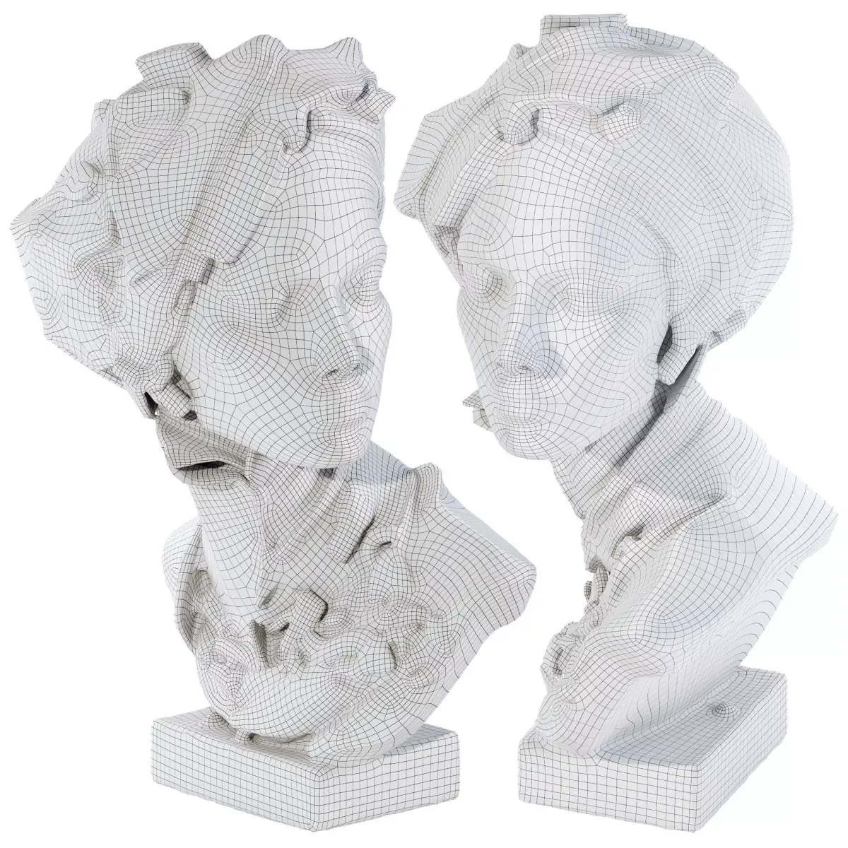 This is a stunning, high-quality 3D model of a contemporary art sculpture, depicting a female bust in a fragmented and deconstructed style. The piece is a powerful artistic statement, blending classical form with a modern, abstract aesthetic.The sculpture is masterfully crafted with sharp, geometric fractures, and the cracks are highlighted with a rich gold finish, invoking the Japanese art of Kintsugi, which celebrates the beauty in imperfection and repair. The main body has a dark, weathered bronze or ceramic texture, creating a dramatic contrast with the luminous gold lines.This model is a perfect centerpiece or accent for sophisticated interior scenes, adding a touch of elegance and intellectual depth.Key Features:A highly detailed and photorealistic 3D model.Unique and artistic deconstructed design.High-resolution textures that realistically capture the aged material and gold inlay.Clean and optimized topology, suitable for close-up renders.Ideal as a decorative prop for high-end architectural visualizations (ArchViz), virtual art galleries, modern living rooms, or any scene requiring a unique artistic element.