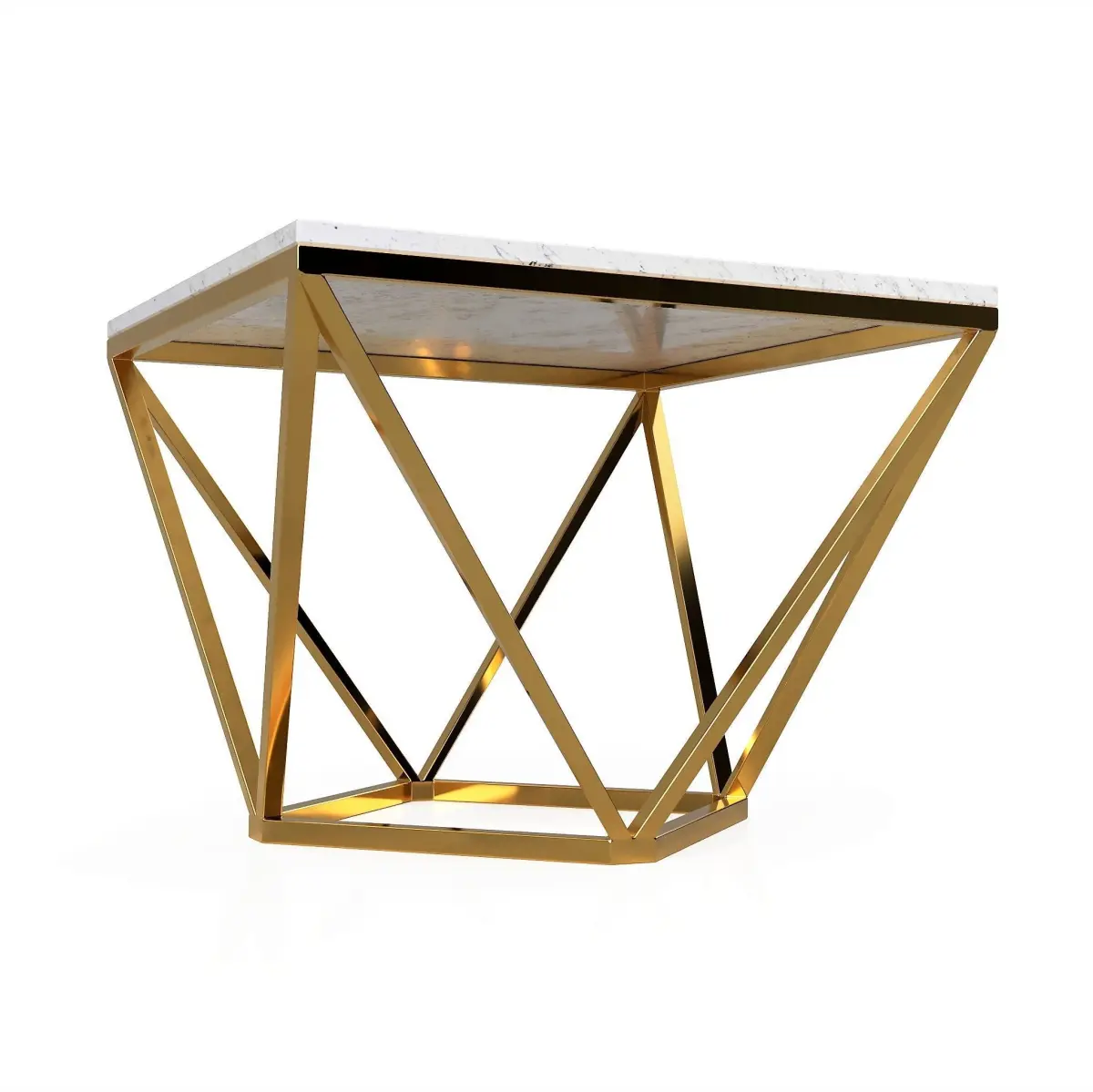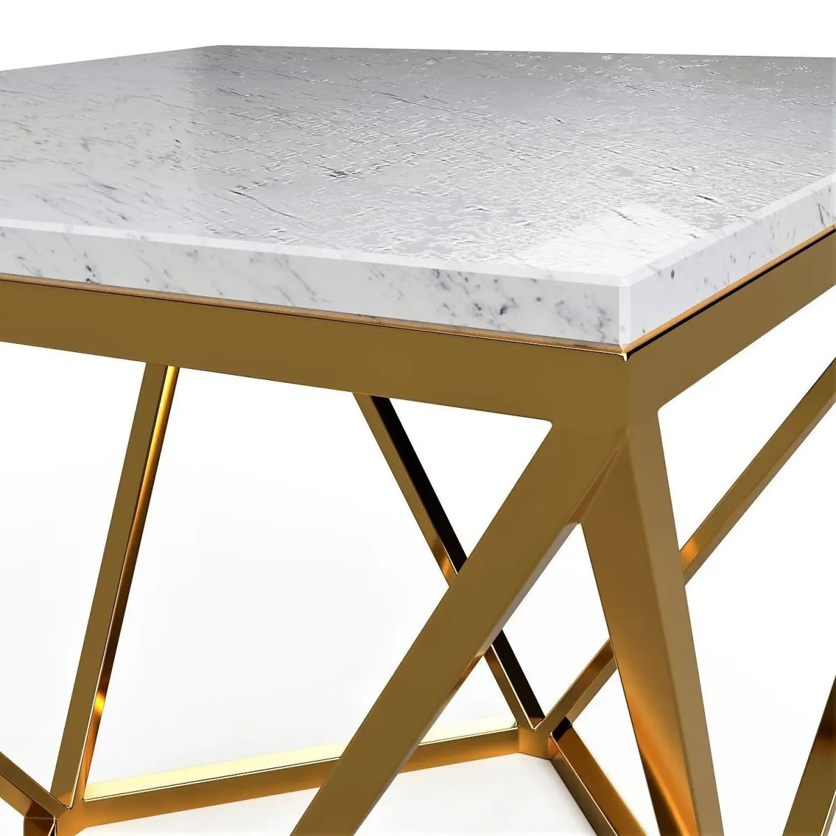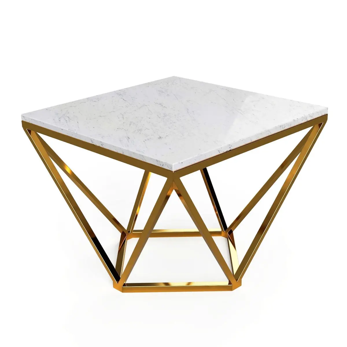 Geometric square coffee table, brass metal base and marble top.Dimensions: 500 mm x 500 mm x 450 mm; base: 300mm x 300 mm.Marble material PBR included.