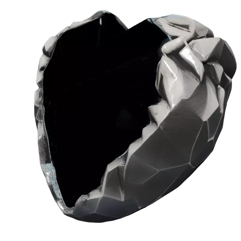 This striking 3D model presents a stylized heart, meticulously crafted with a captivating dual-material design. The outer shell features a rugged, geometric, fragmented stone or metallic texture, giving it a powerful, resilient, and somewhat 'broken' aesthetic. Encased within this textured exterior is a beautifully faceted crystal core, glinting with intricate reflective surfaces that suggest purity and brilliance. This unique blend of rough and refined textures makes the model highly versatile for various creative applications. Ideal for game development as a mystical artifact, a collectible item, or a powerful energy source, its distinct visual appeal can enhance any fantasy or sci-fi environment. It also serves as an exceptional asset for architectural visualization, adding a modern and artistic touch to interior scenes or abstract installations. Furthermore, its compelling design makes it perfect for augmented reality (AR) and virtual reality (VR) experiences, offering an intriguing focal point. Digital artists will find it inspiring for conceptual art pieces, abstract compositions, or symbolic representations in their projects. The model is also suitable for 3D printing, transforming into a unique decorative sculpture or collectible. The asset is provided with clean, optimized topology, ensuring smooth performance in real-time applications while also being suitable for high-quality static renderings. It is UV unwrapped for easy texture application and includes PBR textures to achieve its realistic material properties. Supported file formats include GLB, OBJ, FBX, STL, DAE, ABC, USD, and PLY, ensuring broad compatibility across various 3D software and engines.