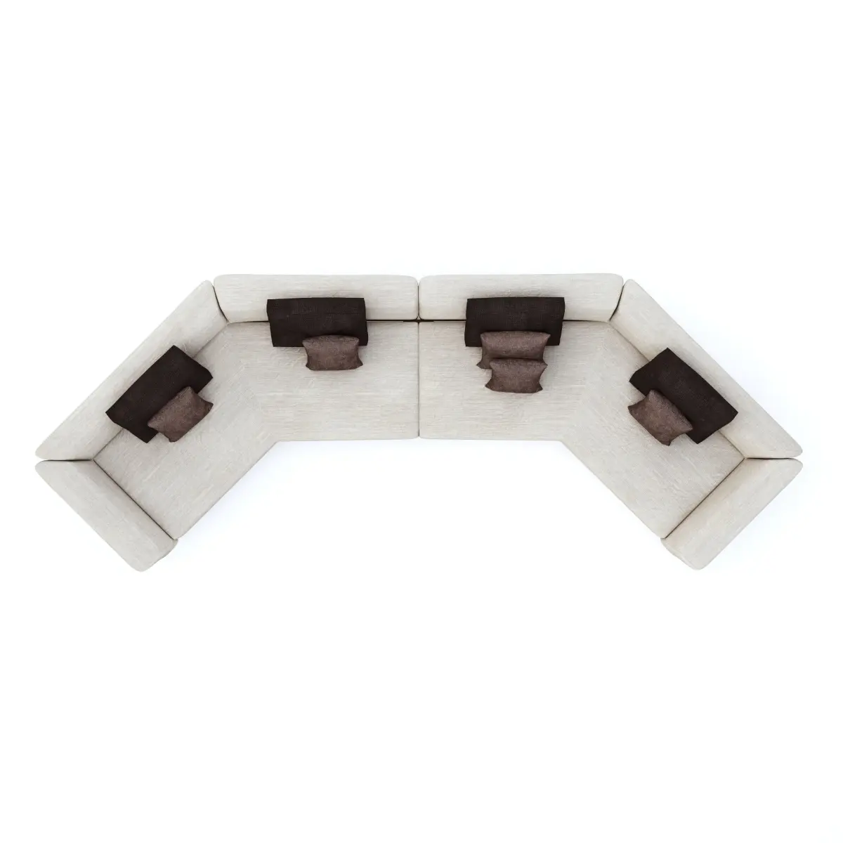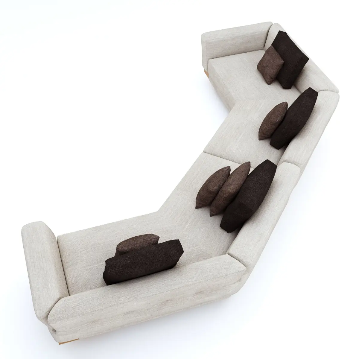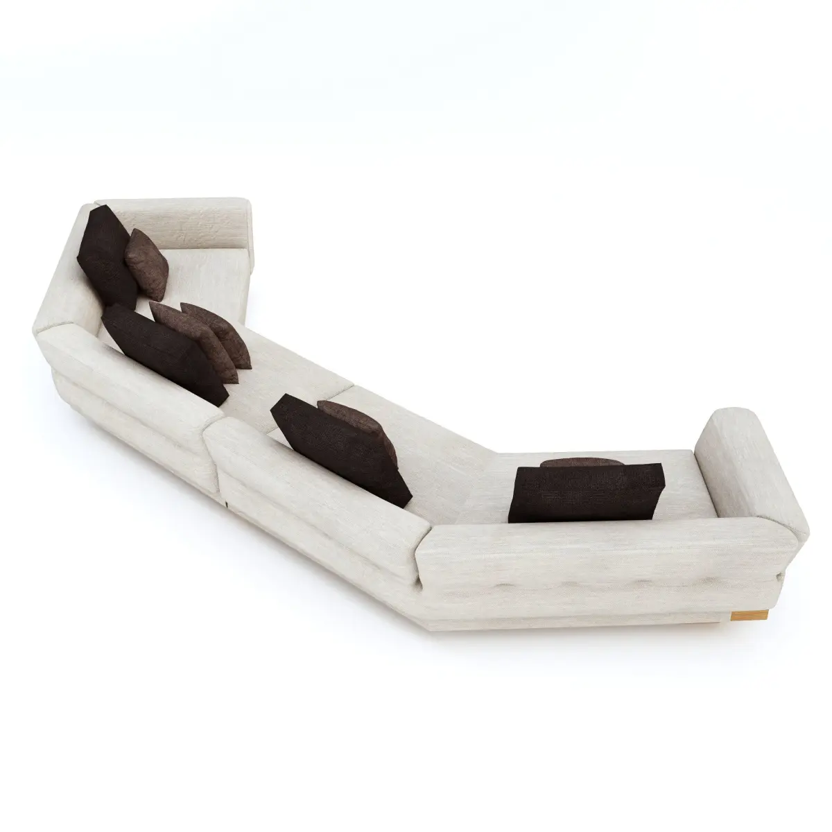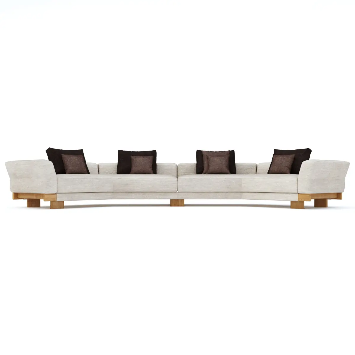 Geometric curved sofa with wooden base and cushions fully modelled and materials with correct scale and UVW mapping which can be added to scene and set up to render. Can be used in most scenes.
