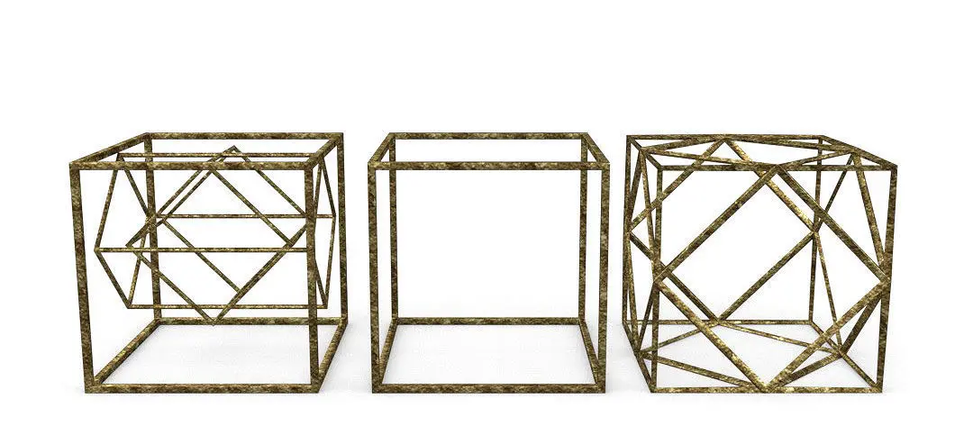 -3 Different Decor Cube Model. -3DS, FBX, OBJ, DAE file format.-Brass Texture + NORMAL map-Rendered images.