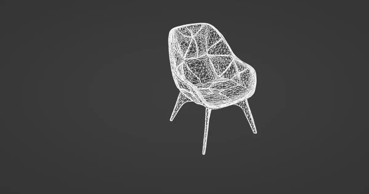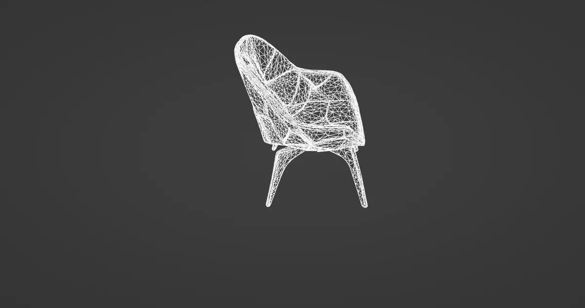 Supporting the chair is an elegantly crafted wooden base with four tapered legs that provide both stability and an added touch of organic warmth. The dark wood grain contrasts beautifully with the sleek, angular seat, making it an ideal piece for high-end interior visualizations, architectural renderings, or modern office layouts. Its refined aesthetic fits effortlessly into contemporary, industrial, or luxury design themes.