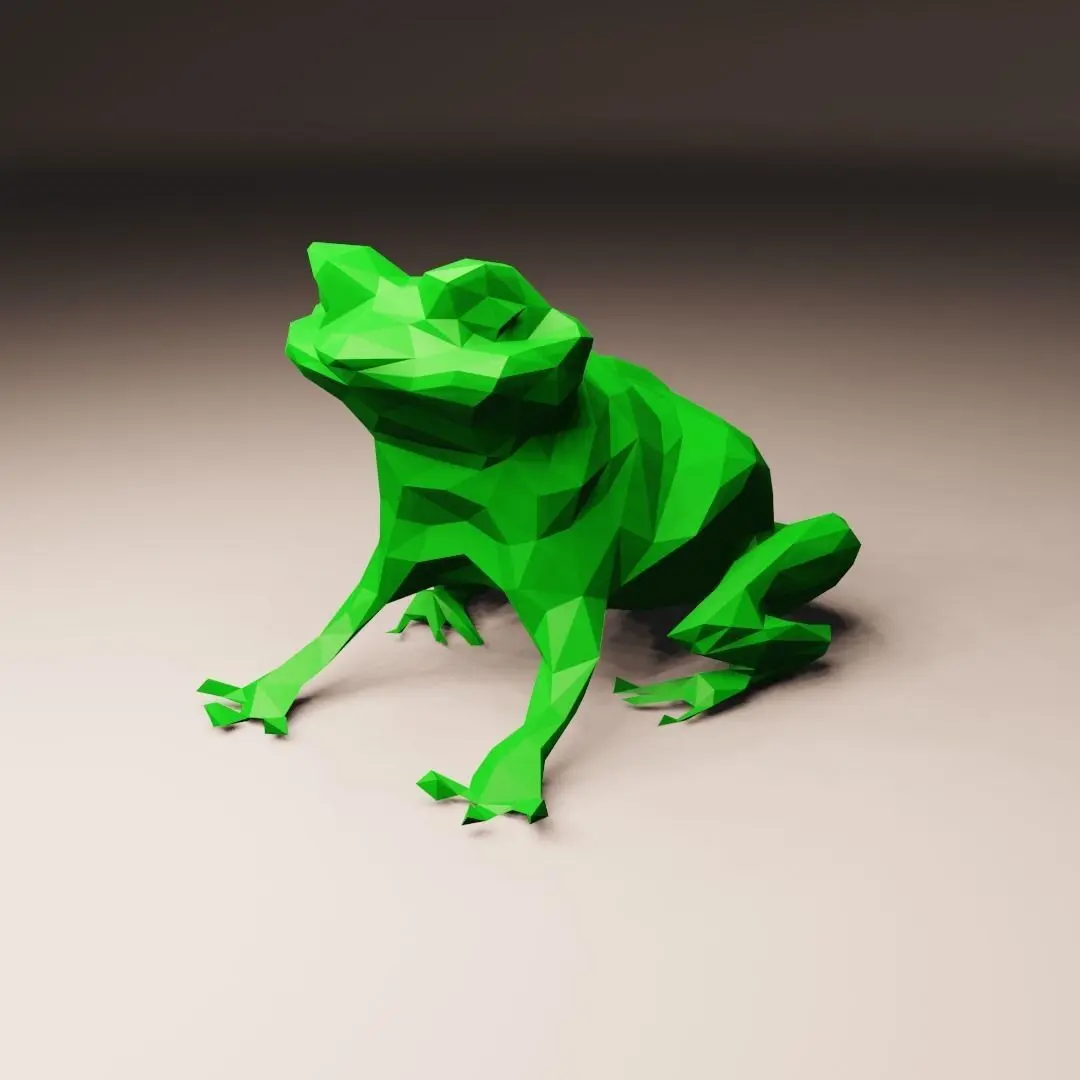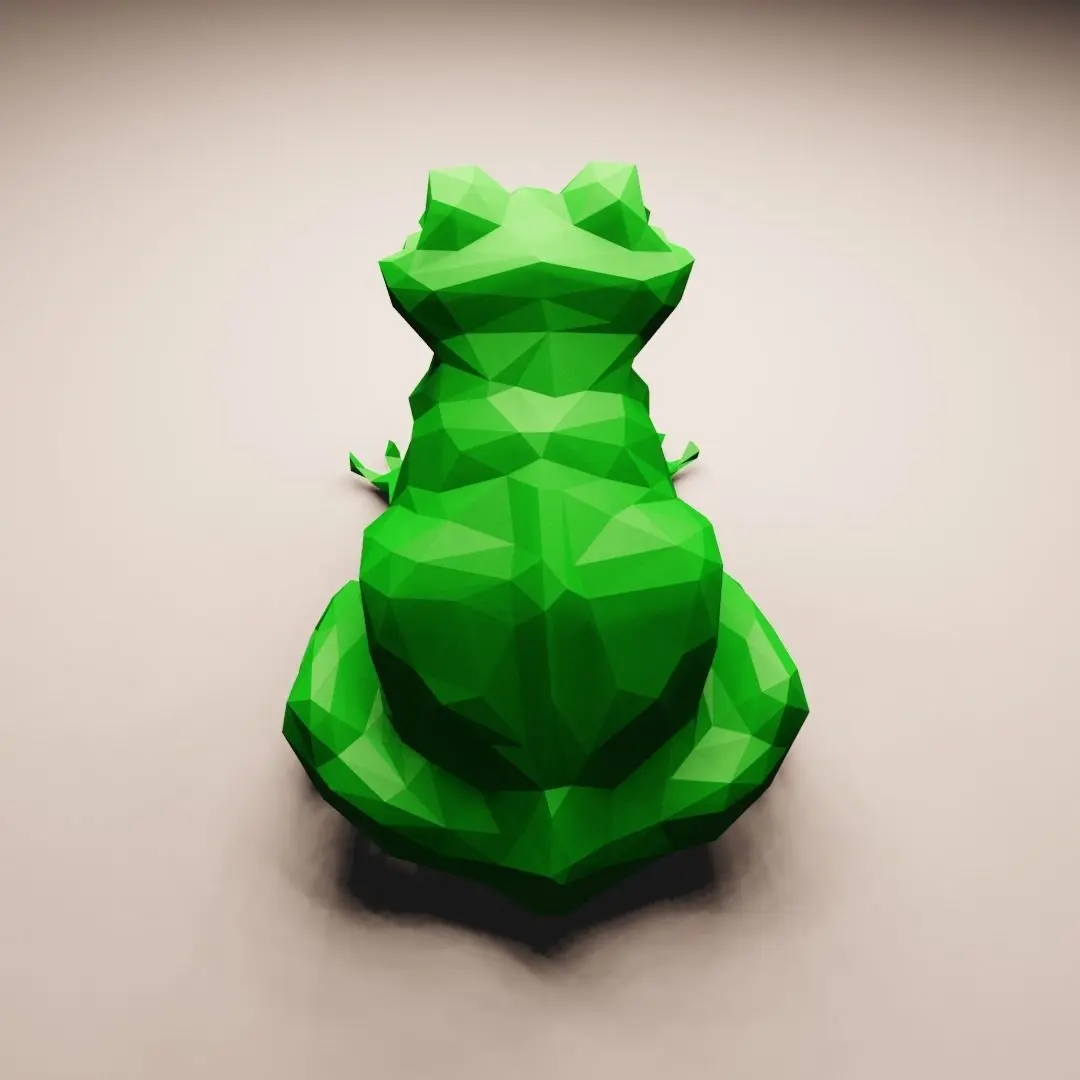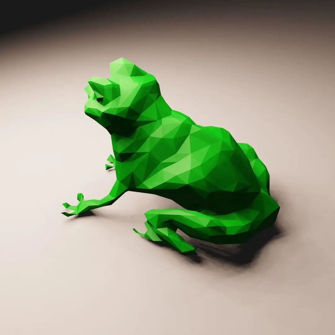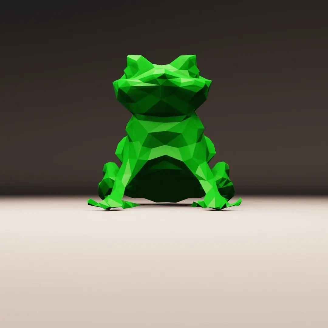 Low Poly, geometric style frog. Reference used was the Leaf Green Tree Frog. Mesh is hollow and watertight and so it is suitable for 3D printing