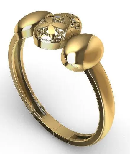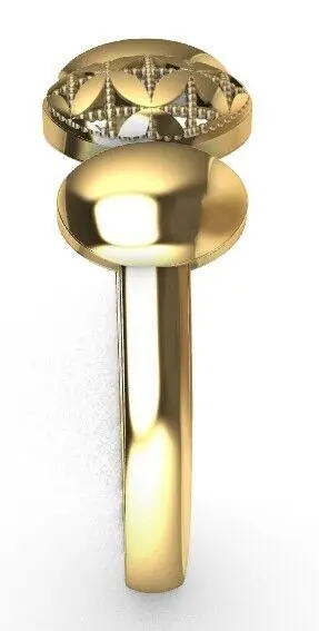 A refined gold ring featuring a central oval element engraved with a sacred geometric pattern reminiscent of the Flower of Life. Flanked by two smooth oval domes, this minimalist yet symbolic design blends elegance with spiritual depth. Ideal for lovers of esoteric jewelry and sacred symbols. Includes 3DM,CULT3D,3ds,STL, and OBJ formats – Size 7.ringsize7