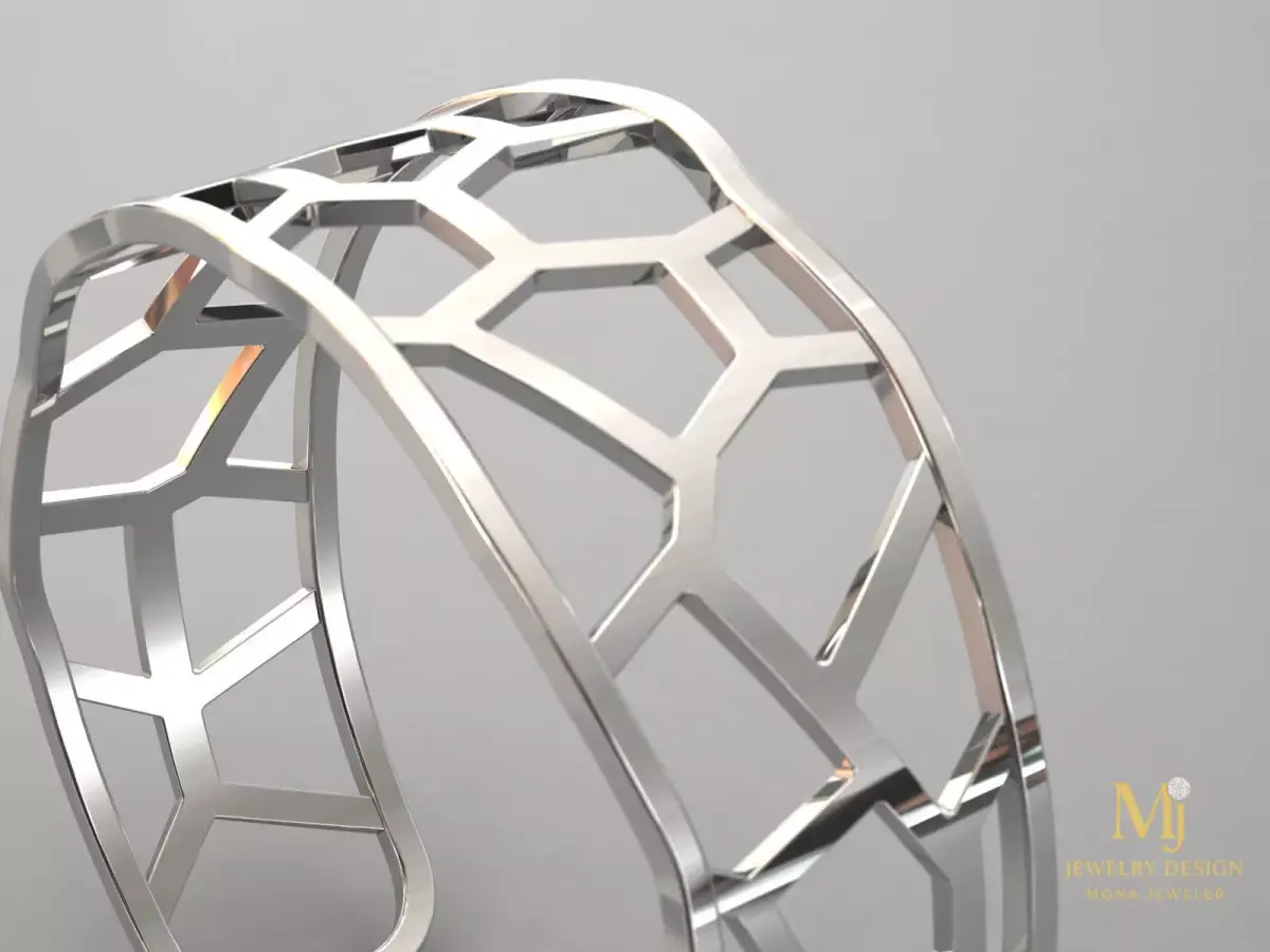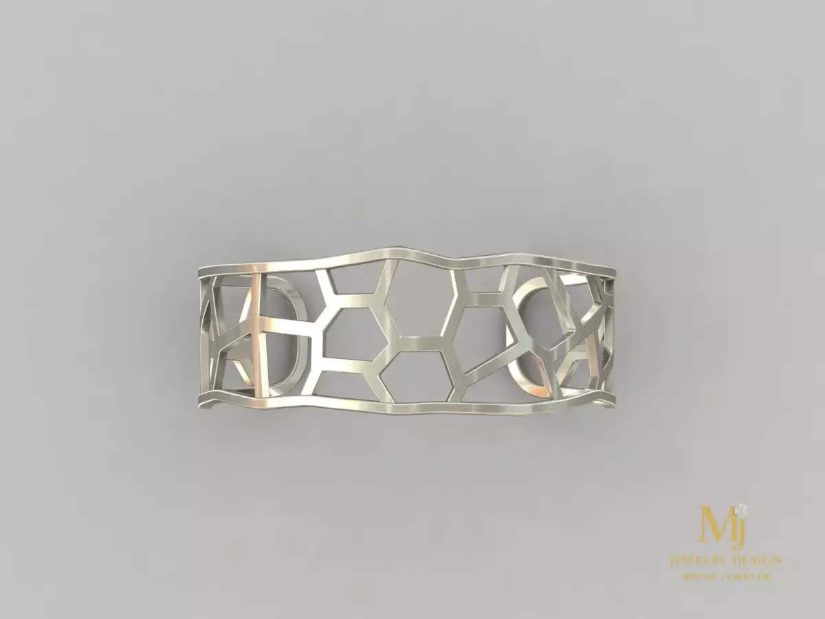 This is a high-quality 3D model of a geometric honeycomb bracelet designed for 3D printing and jewelry manufacturing.The model is prepared in medium size with an inner diameter of 60 mm. The structure features elegant honeycomb cutouts with balanced wall thickness for both durability and lightweight comfort.