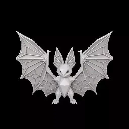 A modern, stylized bat designed in a faceted low-poly style with crisp polygonal surfaces. Its outstretched wings create symmetry, while upright ears and triangular eyes give it a bold yet minimal character. Rendered in a clean origami-inspired design, this 3D-printed bat makes a striking Halloween decoration, whether displayed on a tabletop, wall, or as part of a spooky collection.
