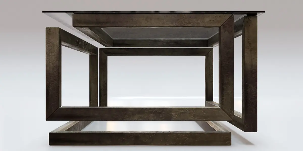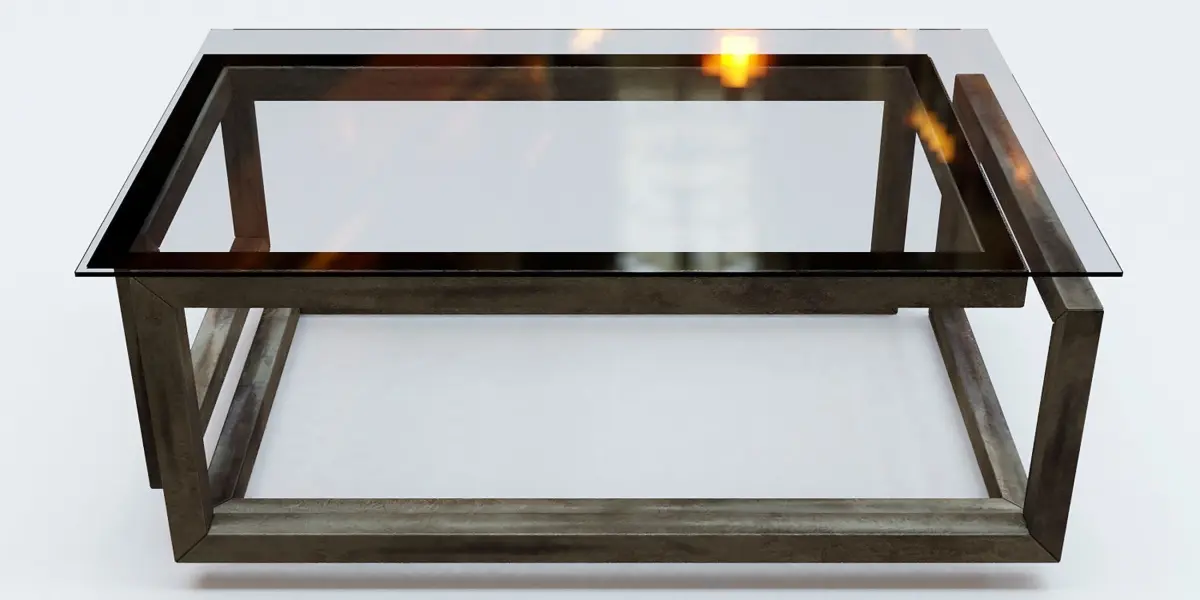 THIS MODEL CONTAINS:1 Coffe Table in Industrial/Steampunk style, made with made with probed metal and glass top.