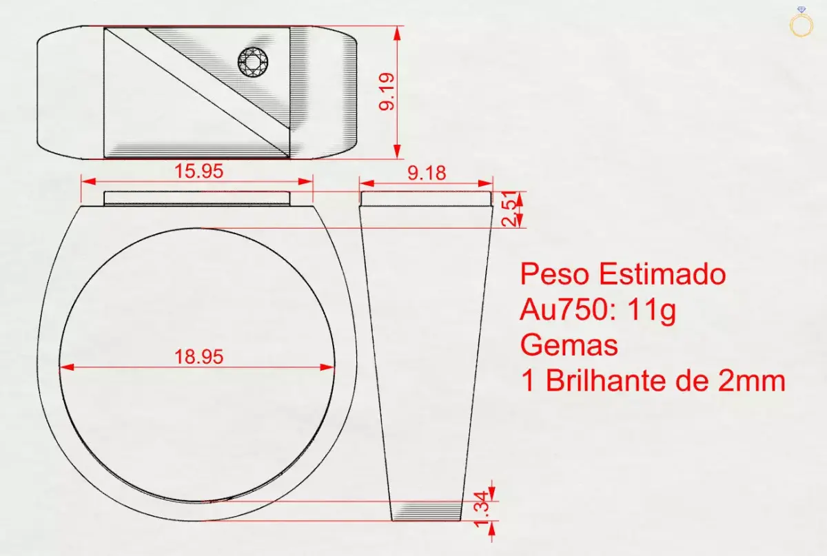 Geometric ring with triangular detail and 2mm brilliant 3D print model