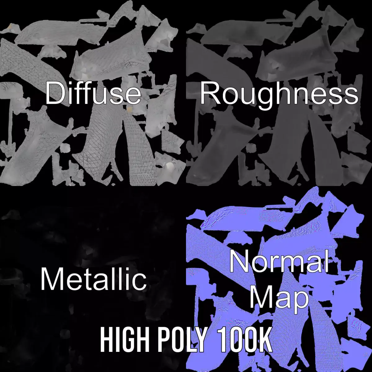 This Geometric Silver Arch model pack is ideal for architectural visualization, contemporary sculpture, and modern art installations. The model's sleek design and metallic finish make it versatile for a variety of creative projects. Each model has 3 levels of detail: low-poly (1000 triangles for mobile), middle-poly (10,000 triangles for environment), and high-poly (100,000 triangles), which allows for the use of this model in production rendering (such as 3ds Max, Maya, Cinema4D, Blender, V-Ray/Corona/Cycles and all others), game engines (Unity and Unreal compatible), and interactive presentations, providing a choice of detail based on the LOD System principle. The model's textures are PBR, Diffuse, NormalMap, and reflection/roughness/metallic, which are suitable for any modern rendering engine. All models are accurately unwrapped and have no overlapping UV. All textures are 4096*4096 in size. If you enjoyed this model, please like and leave a comment.