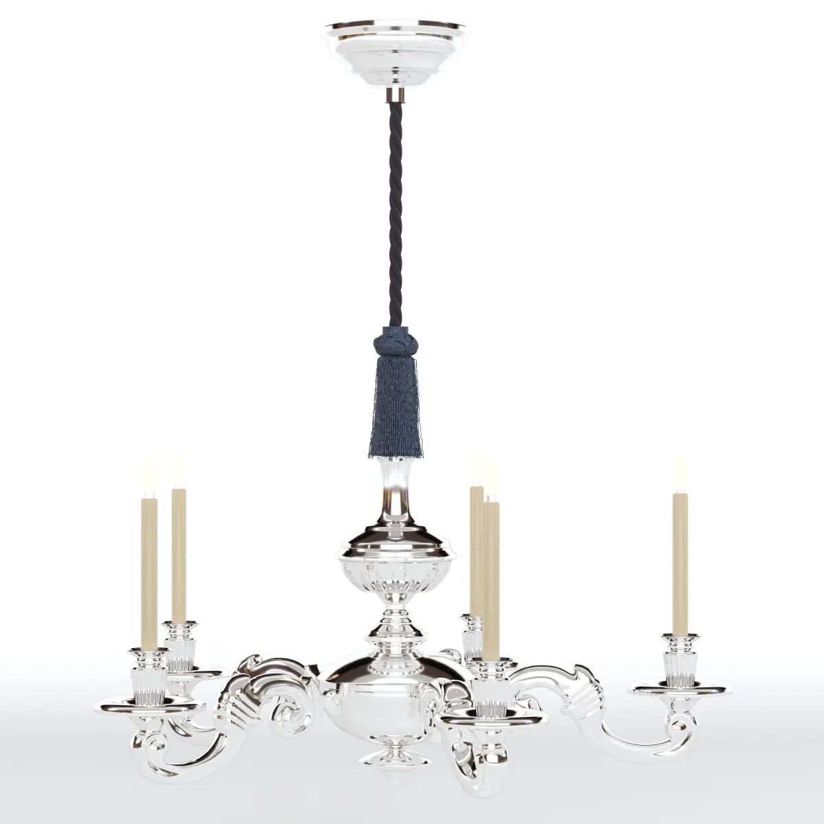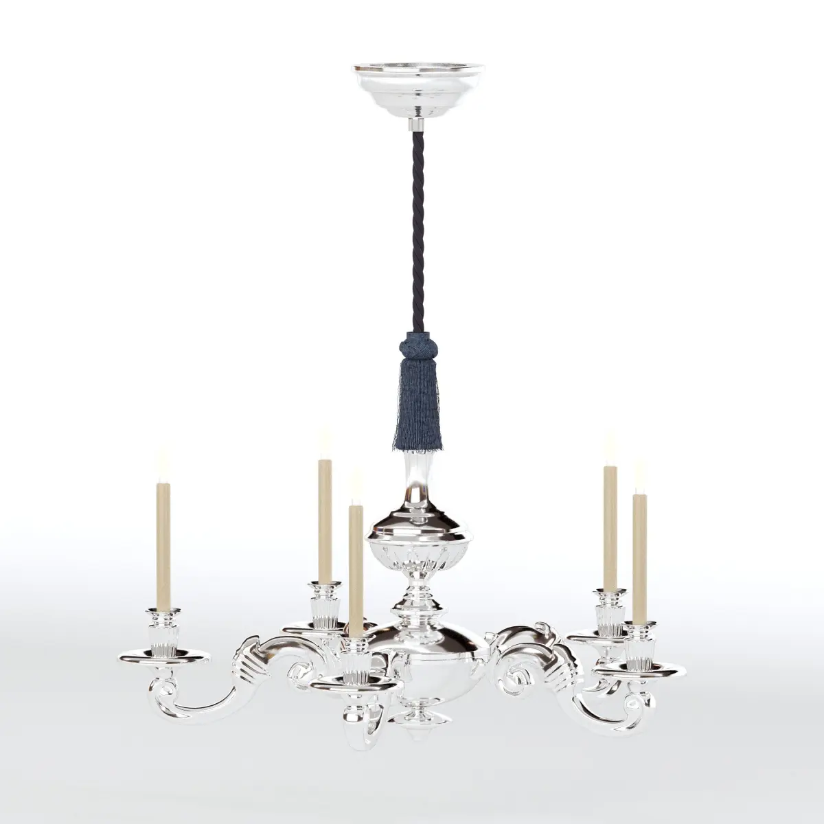 Georgian Styled Chrome Chandelier made in 3ds max and modelled in metric. This is a Georgian styled chandelier with candles and in a metal finish. The models are set up with correctly scaled UVWs and come with finishes and materials. As you can see in the images of the model supplied, the materials follow the realistic flow of how the materials would be made or how the object would be constructed. Also, by the wire frame image you can see the model has clean topology to maximise detail without increasing poly count unnecessarily, which helps to produce stunning visuals.File Format: Native 3DS Max fileAdditional File formats: OBJ and FBXIf you would like a different format, let us know what you need and we will see if we can export into one that works for you, just need to ask.Materials and finishes in downloadable zip.The model is also set up to render in Vray and Corona - there are two file formats in the zip folder.