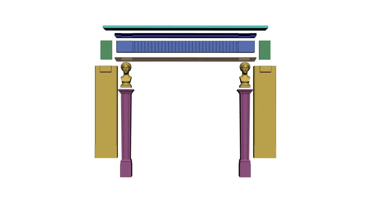Ornate Georgian fireplace mantel. The model is designed for the creation of 3d prints or processing through CNC machines (for example in wood or stone). The files are divided into a folders each one containing 2 subfolders (one for OBJ files and another for STL). Each format includes a file of a few elements for 3D printing and one divided into several parts for CNC machining (see the renderings of the exploded views). I also added a folder with files in ZTL format (ZBrush). Mine is just a suggestion of use. Models are formed from polygonal meshes, not optimized for texturing. Please, check if the model geometry is right for you by downloading the free samples at this link: