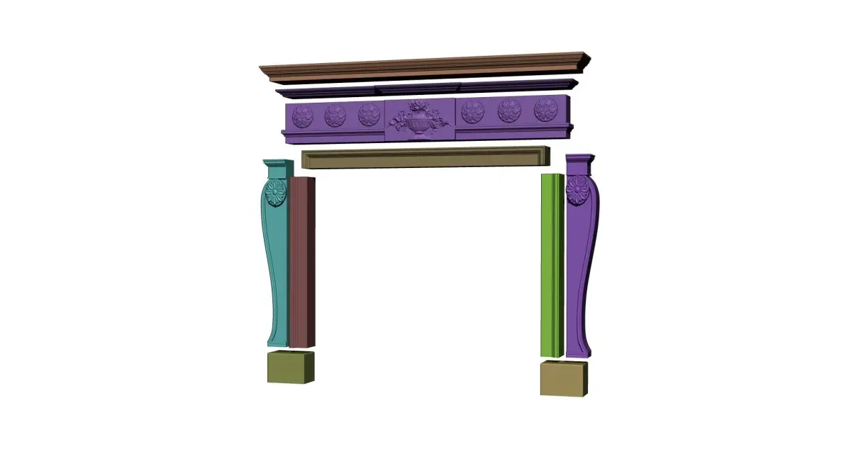 Ornate Georgian fireplace mantel. The model is designed for the creation of 3d prints or processing through CNC machines (for example in wood or stone). The files are divided into a folders each one containing 2 subfolders (one for OBJ files and another for STL). Each format includes a file of a few elements for 3D printing and one divided into several parts for CNC machining (see the renderings of the exploded views). I also added a folder with files in ZTL format (ZBrush). Mine is just a suggestion of use. Models are formed from polygonal meshes, not optimized for texturing. Please, check if the model geometry is right for you by downloading the free samples at this link: